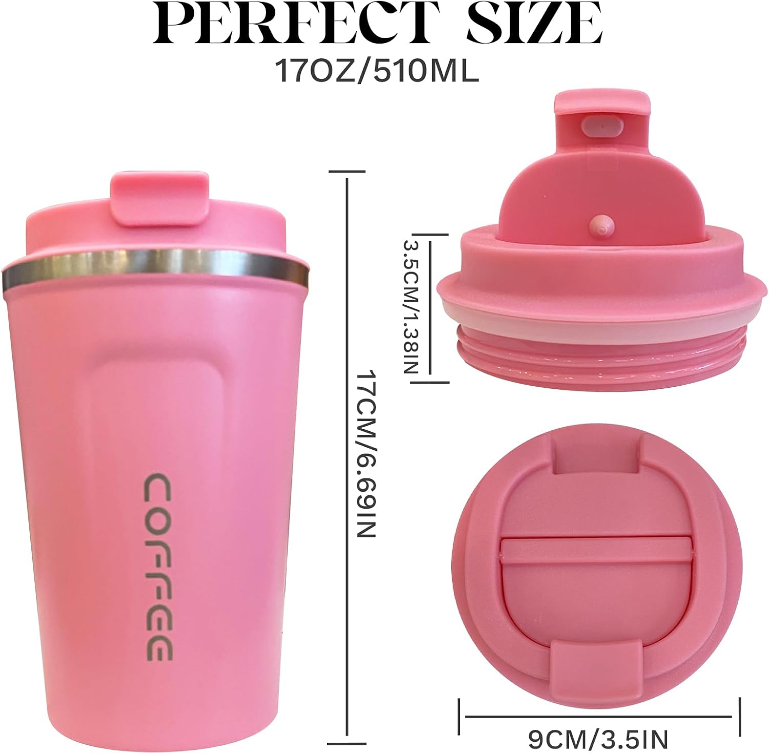 - Perfect Capacity: Our reusable coffee cup is the perfect size for your daily coffee needs. With a 17oz(510ml) capacity, it's not too big or too small - just the right amount to keep you energized throughout the day. The small and beautiful design makes it easy to carry with you wherever you go, whether you're commuting to work or going on a road trip. It also fits most car cup holders and coffee makers.