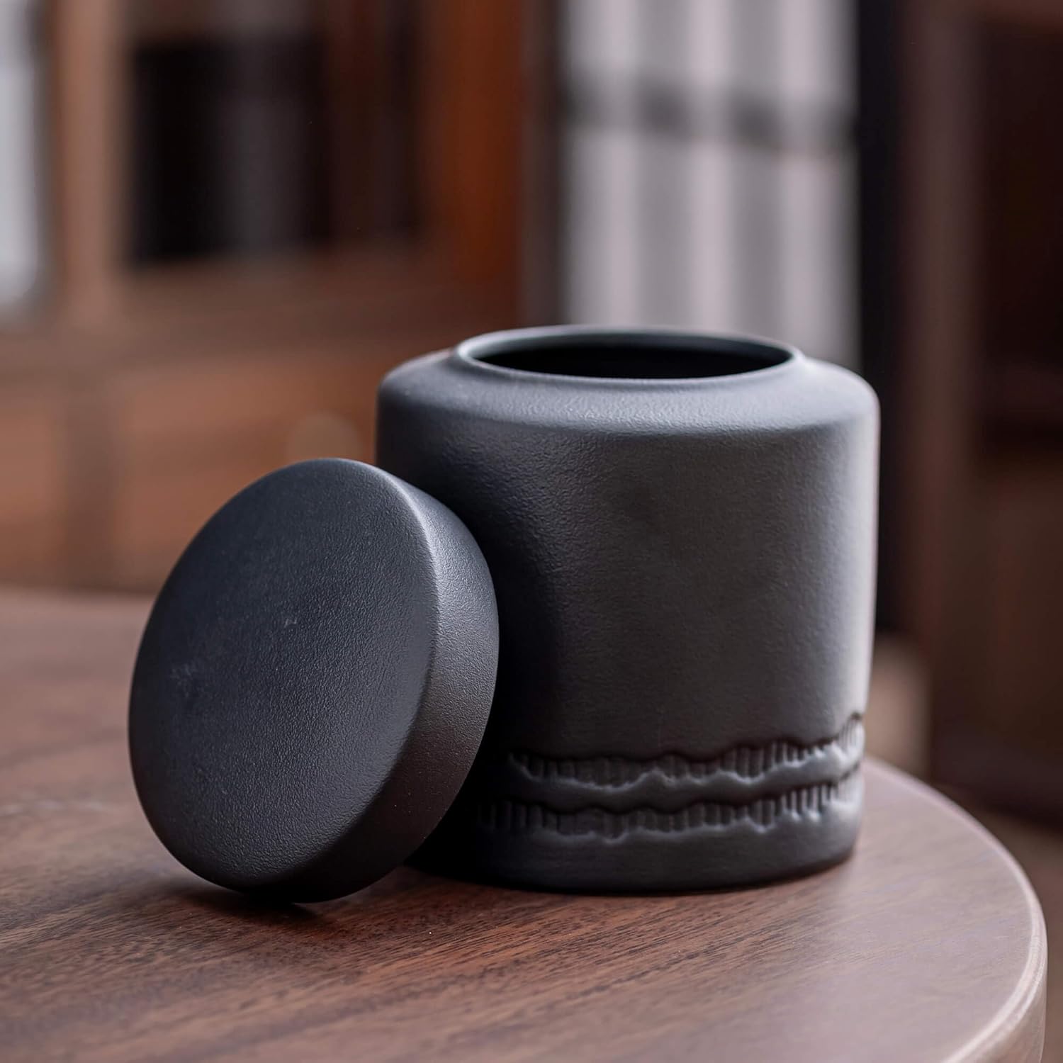 Tea Canister for Loose Tea with Airtight Lid, Kitchen Storage Containers, Ceramic Food Storage Jar, Ceramic Coffee Canister (Black)