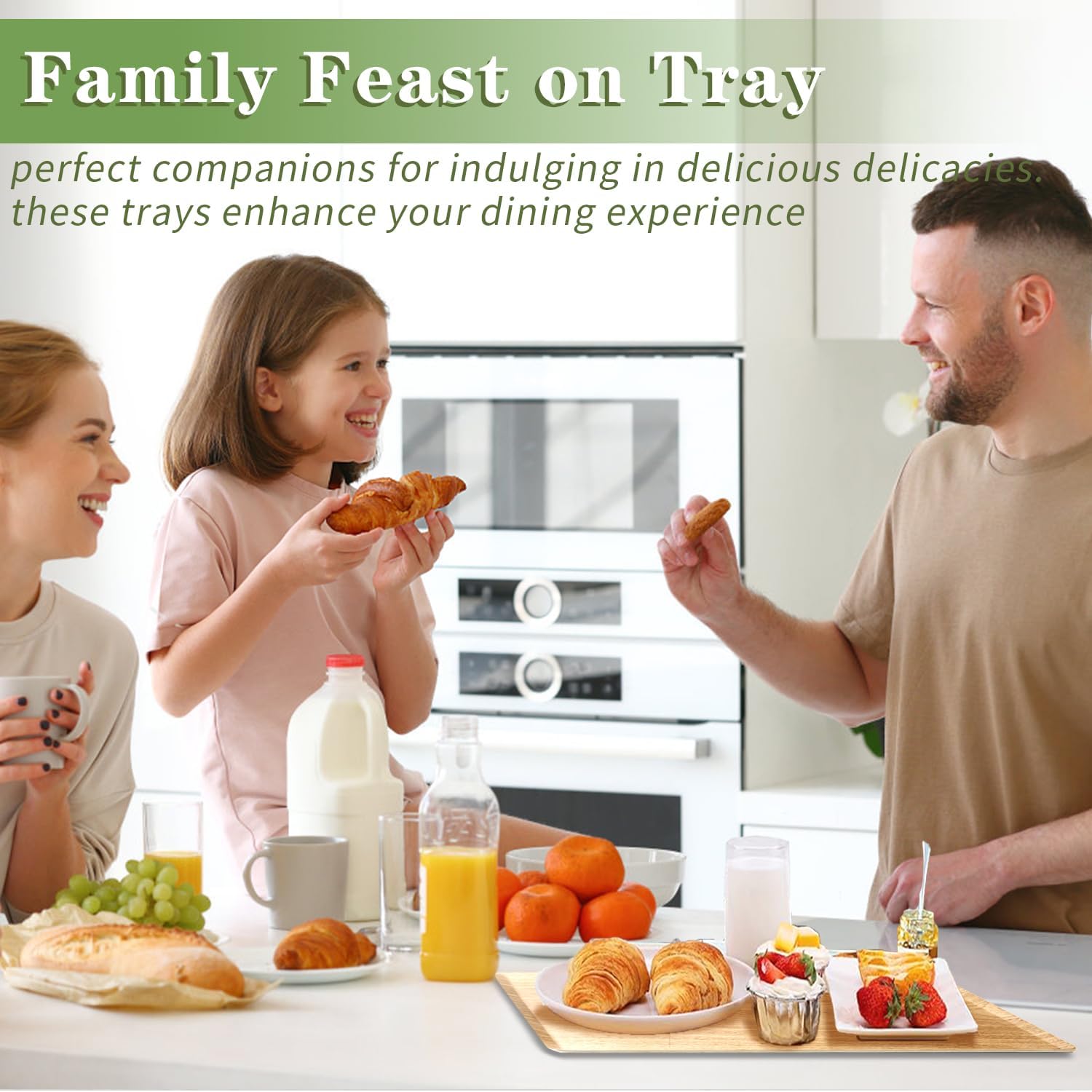 - Aesthetic Decor:The tray design is fashionable and simple, with three sizes to choose from, providing enough space for use, and suitable for various occasions. It can be used as a bed tray, breakfast tray, tea tray, coffee tray, and party tray, etc.