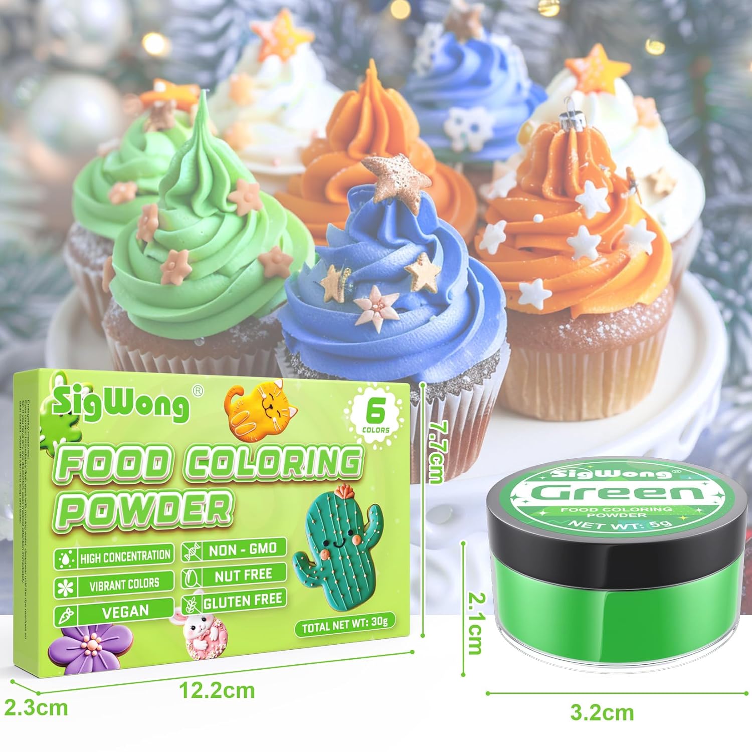 - 【Vivid Colors】: This food coloring powder kit contains 6 highly concentrated colors: black, purple, dark blue, green, orange, red, each food coloring powder 5g/Bottles. The finished product is bright and rich in color, uniform and delicate. Elevate your creations effortlessly with our food coloring powder!
