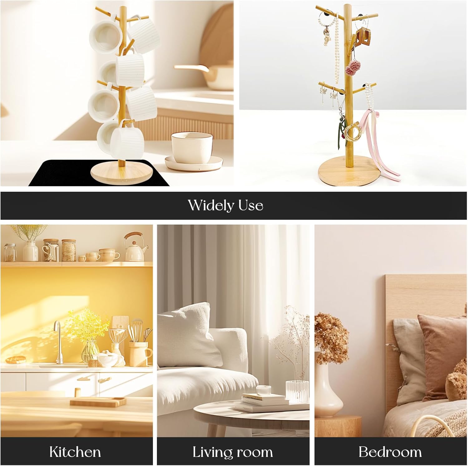 - 【Save Your Space】Mug stand can not only be used to store, display or dry cups, but also be used as a jewellery holder. The usage scenarios of coffee cup holders are very diverse, whether in the kitchen, living room, coffee bar or office, you can use the coffee mug organizer to organise coffee cups, mugs or some small objects to achieve the effect of saving countertop space.