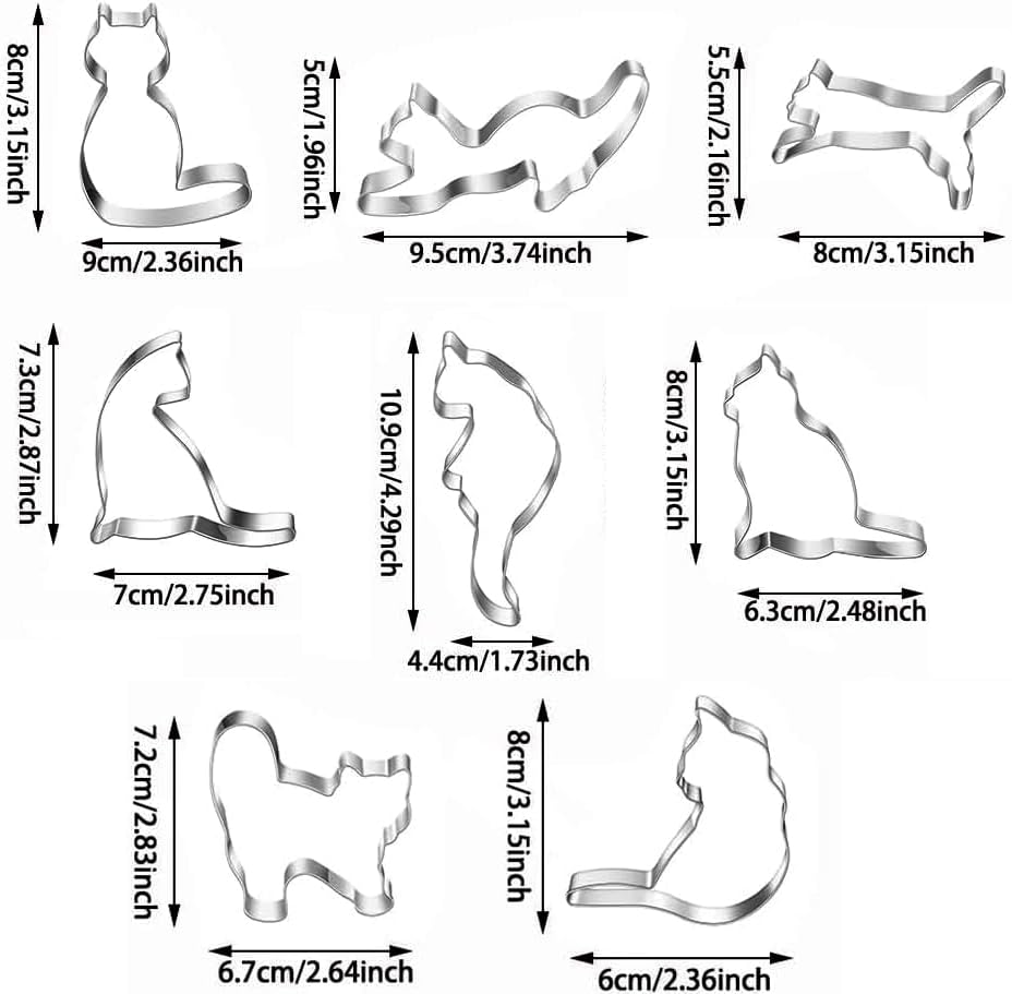 - Cat Shaped Cookie Cutters Set,10pcs molds For Cake/Cookie,Stainless Steel Cake Tools For Kids,Party Accessories By MrCookie, Medium, Silver