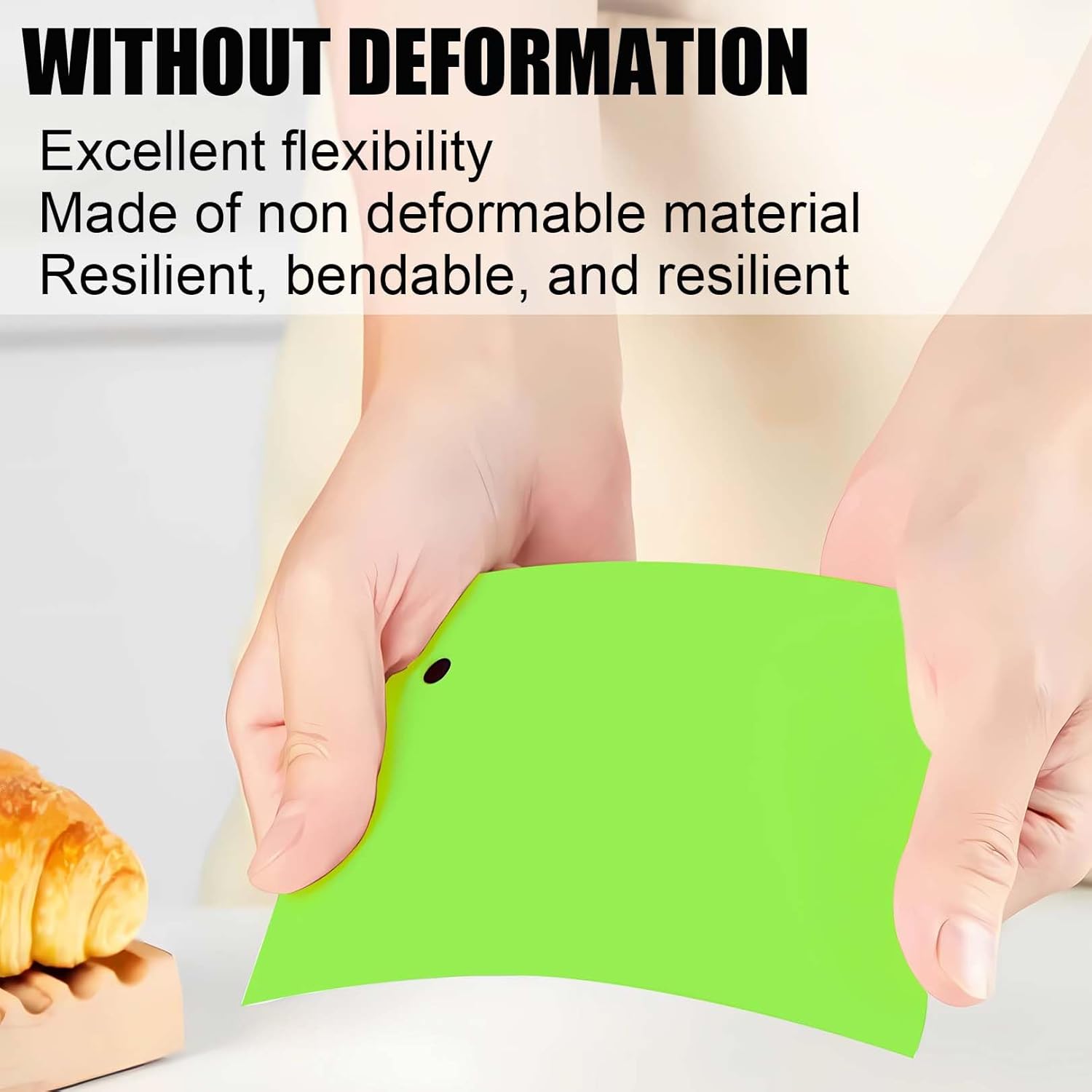 - 2.【Materials】dough scraper tool Made of high-quality plastic-PP.Eco-friendly,Durable,Reusable,Lightweight,Strong and flexible.Not easy to deform,Non-stick,Can accurately knead the side of the bowl.Easy to clean,just clean it with warm water,then wipe with a soft rag.