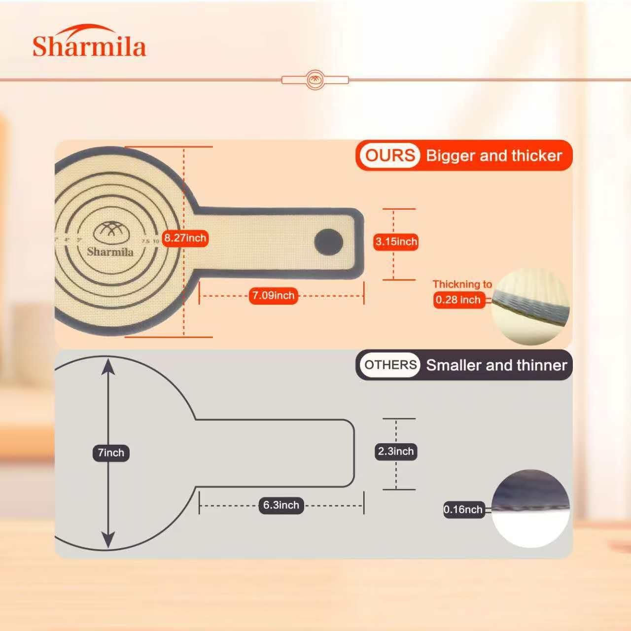 - 【Reusable, Save Money and Planet】- Sharmila silicone baking mat is made of advanced food grade silicone.Silicone bread sling isn't easy to deform or break, durable.Silicone baking mats can replace parchment to save money and planet.