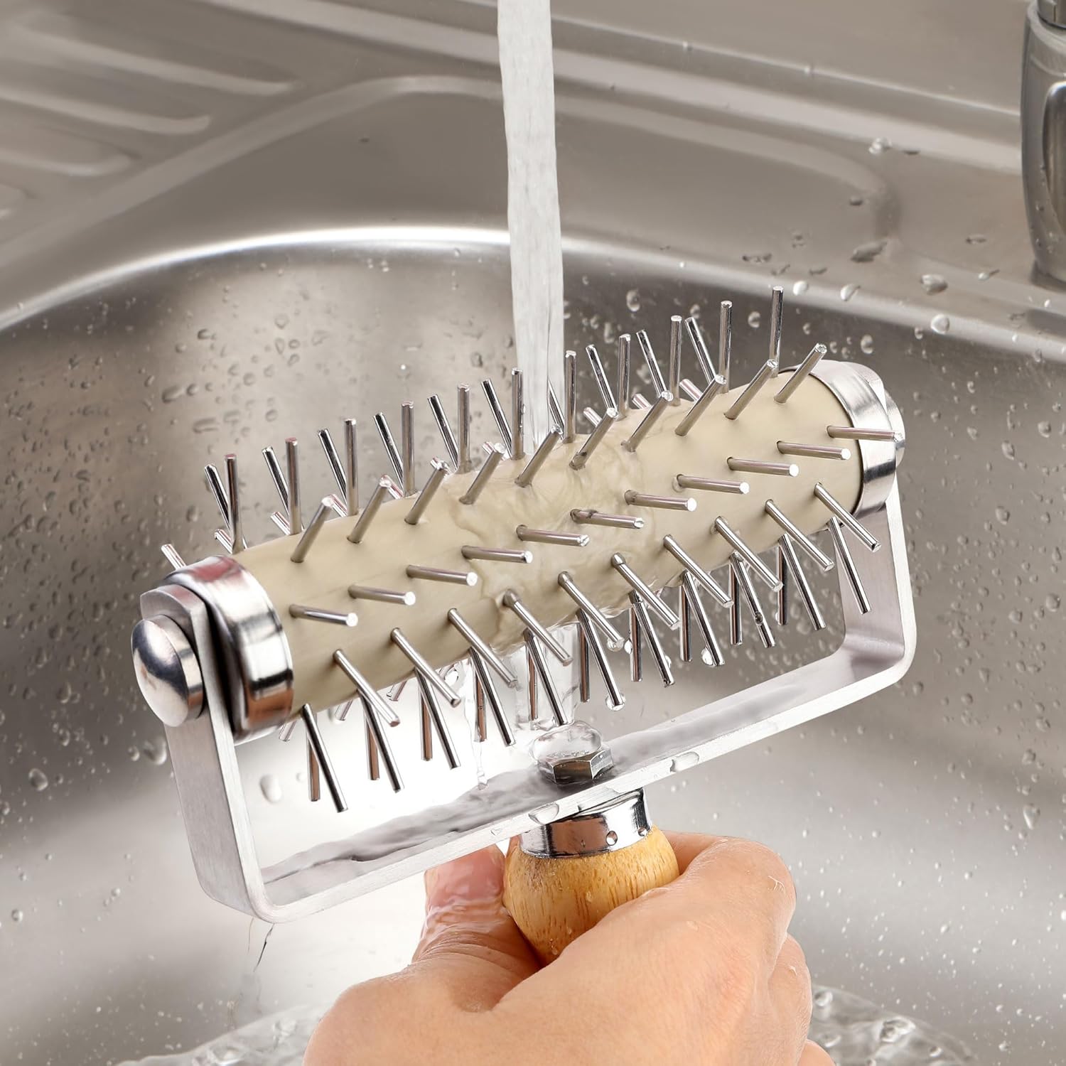 - Excellent Material: The rolling pin and dough docker are made of high quality stainless steel and natural solid wood for durability. Free of paint and wax, odorless and natural. Polished wooden handle for comfortable grip and easy operation.
