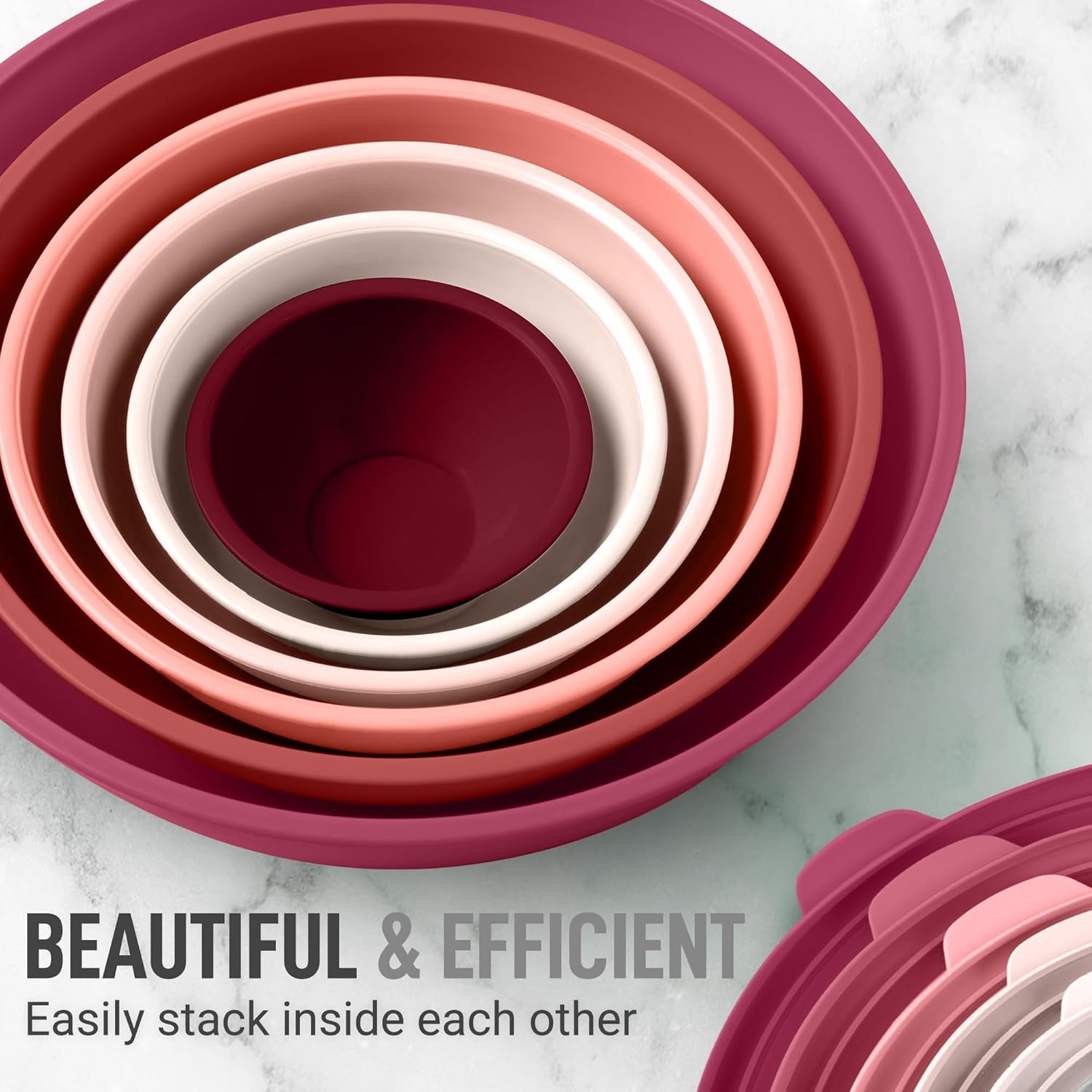 Zulay Kitchen 12 Piece Plastic Mixing Bowls with Leak-Proof Lids Set - Microwave and Freezer Safe Kitchen Mixing Bowls for Preparing, Serving and Storing - Large Nesting Bowls (Red Ombre)