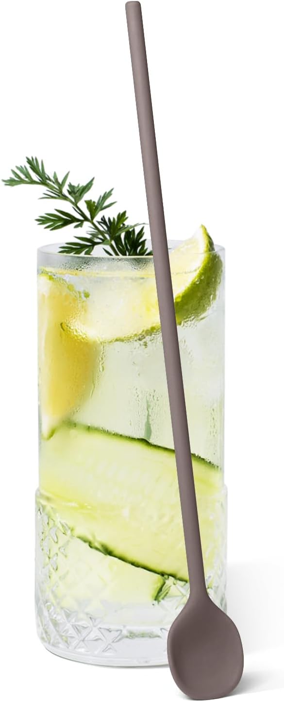 carrotez 9.9" Silicone coffee stirrer, Long Reusable Coffee Spoon for Iced Tea, Multipurpose Beverage Stirring Spoon - Cocoa Brown