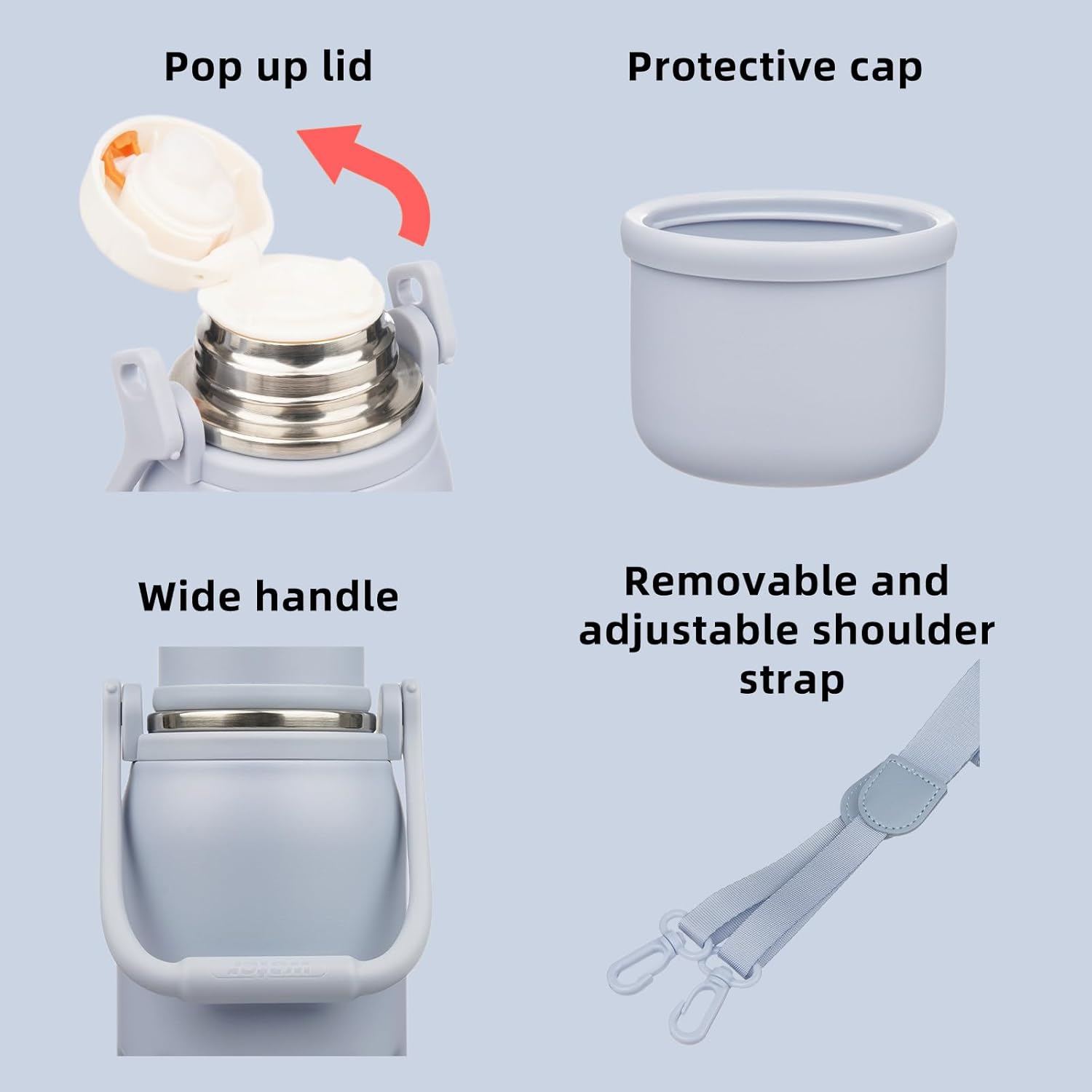 - BPA-Free Water Bottle with Carry Handle and Shoulder Strap: Has a silicone spout and a shoulder strap, all can removable for easy cleaning, comfortable handle makes it easy to carry, also making it an ideal choice for outdoor activities or everyday use