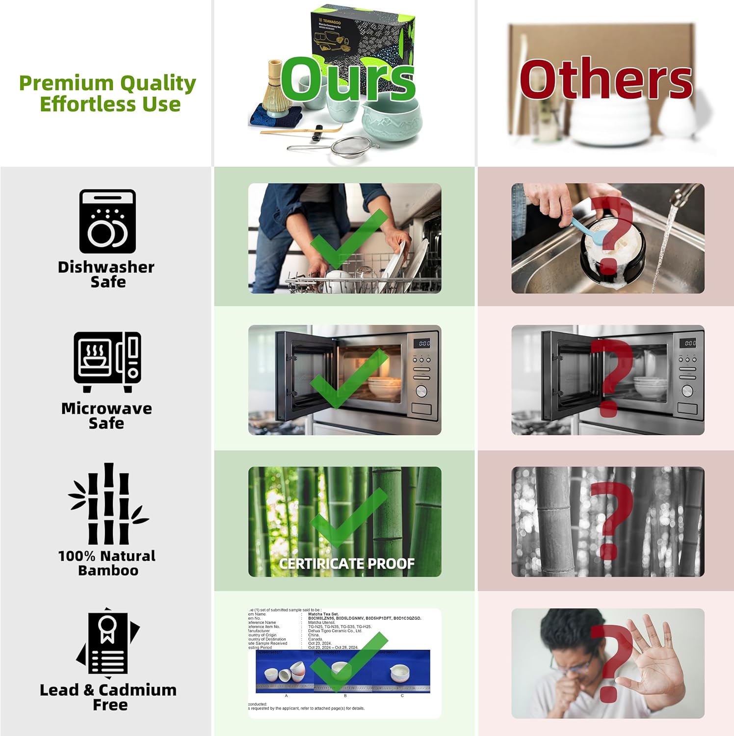 - HIGH SAFETY & QUALITY: Our Handcraft Matcha Whisk, About 100 Fine Tines(百本立),100% Crafted From High Quality Bamboo With A Vegetable Oil Finish To Enhance Its Durability. Additionally, Our Ceramic Bowl Has Lead-free And Mercury-free Test Reports.food-grade And Eco-friendly