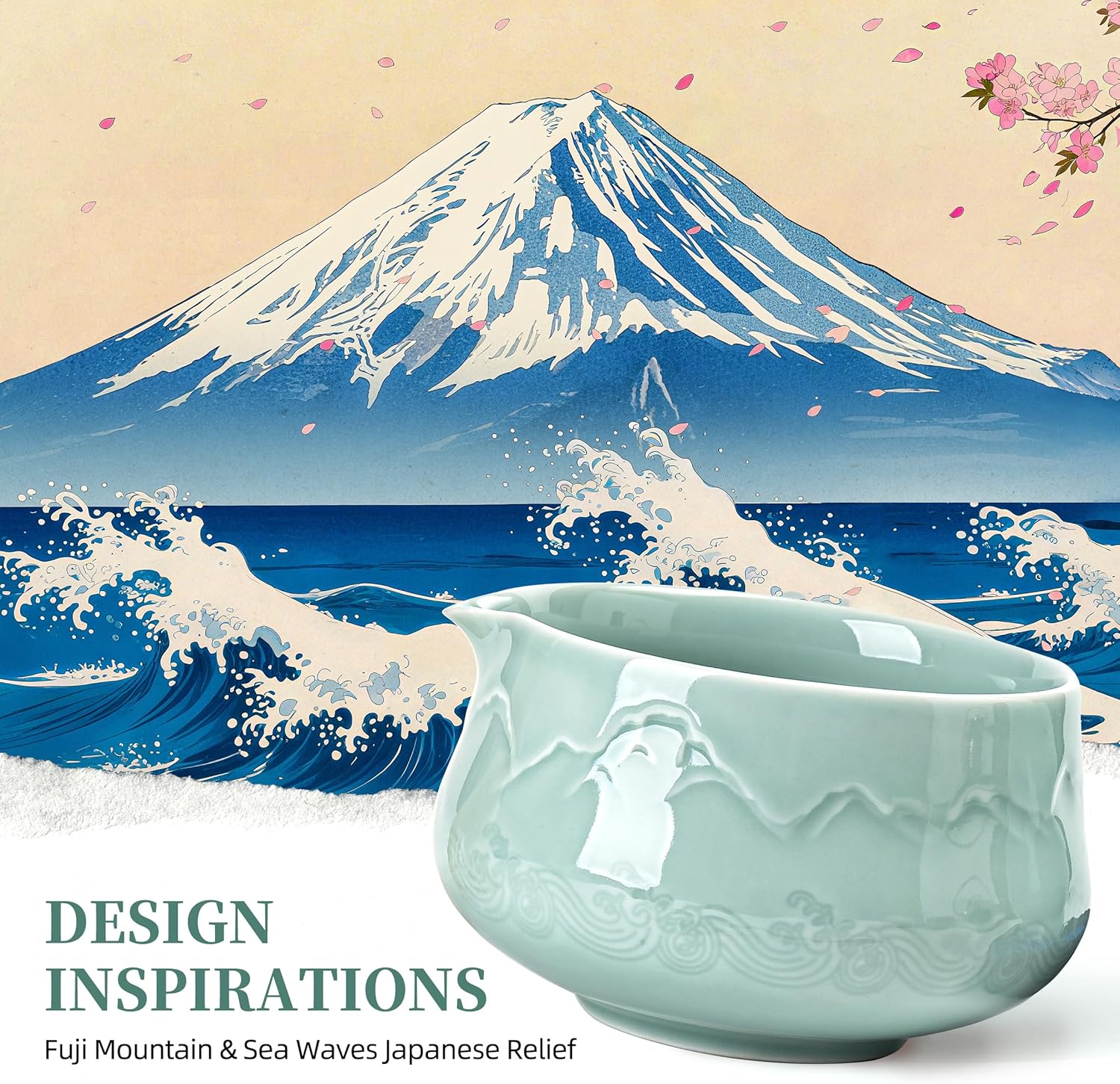 - 7-PCS MATCHA WHISK SET: 1*Ceramic Bowl (chawan) 560 Ml/18.9 Oz, 1*Bamboo Whisk, 1*Bamboo Scoop (chashaku), 1*Cermaic Whisk Holder, 1*Ceramic Scoop Stand, 1*Cotton Tea Cloth (chakin), 1*Matcha Powder Sifter.includes All Accessories
