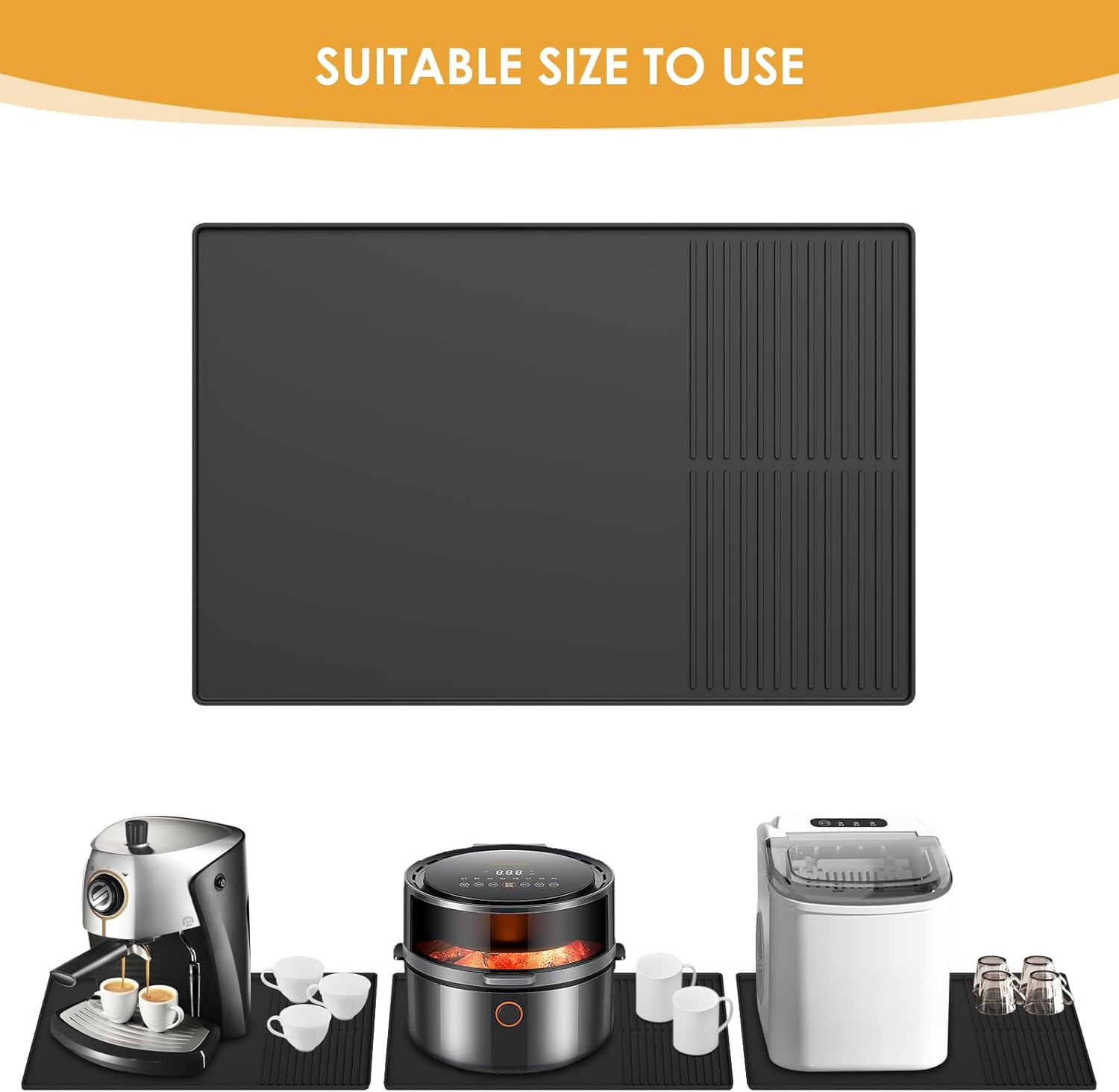 Silicone Coffee Mat with Raised Edges, , 24'' x 16'', Bar Mat for Countertops, Bar Accessories, Coffee Maker Mat, Espresso Machine, Dish Drying Mat (BLACK)