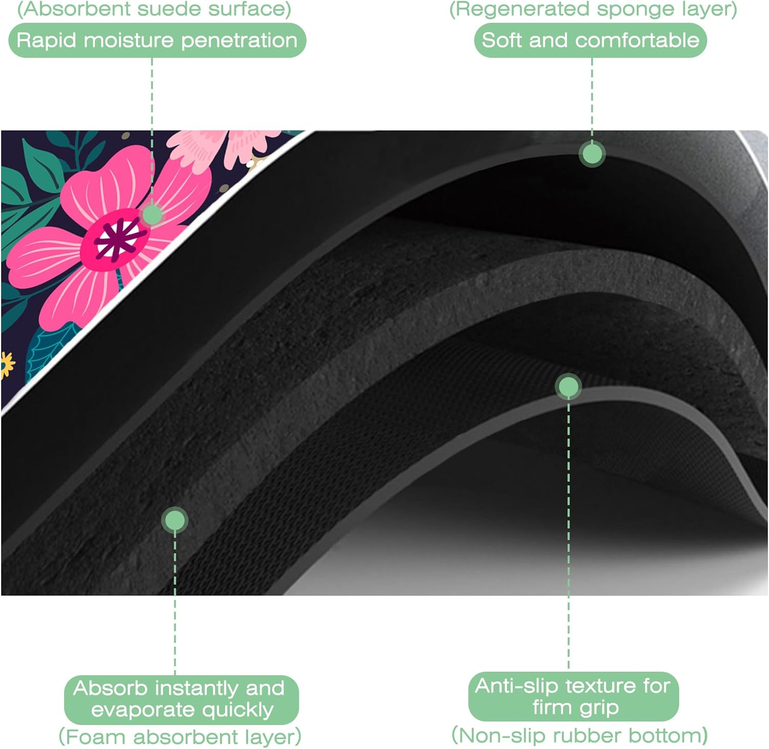 Dish Drying Mat Bright Colorful Flowers Leaves Coffee Mat,12"X19" Bsorbent Dish Drying Pad for Sink Dishes or Under Rack Kitchen Counter Accessories Absorbent Hide Backed Drying Mat