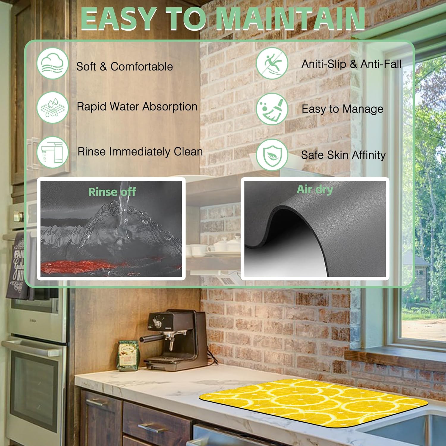 Fresh Yellow Lemon SliceDish Drying Mat,16"X24" Absorbent Fast Dish Drying Mat for Kitchen Counter Pot and Pan, Kitchen Accessories