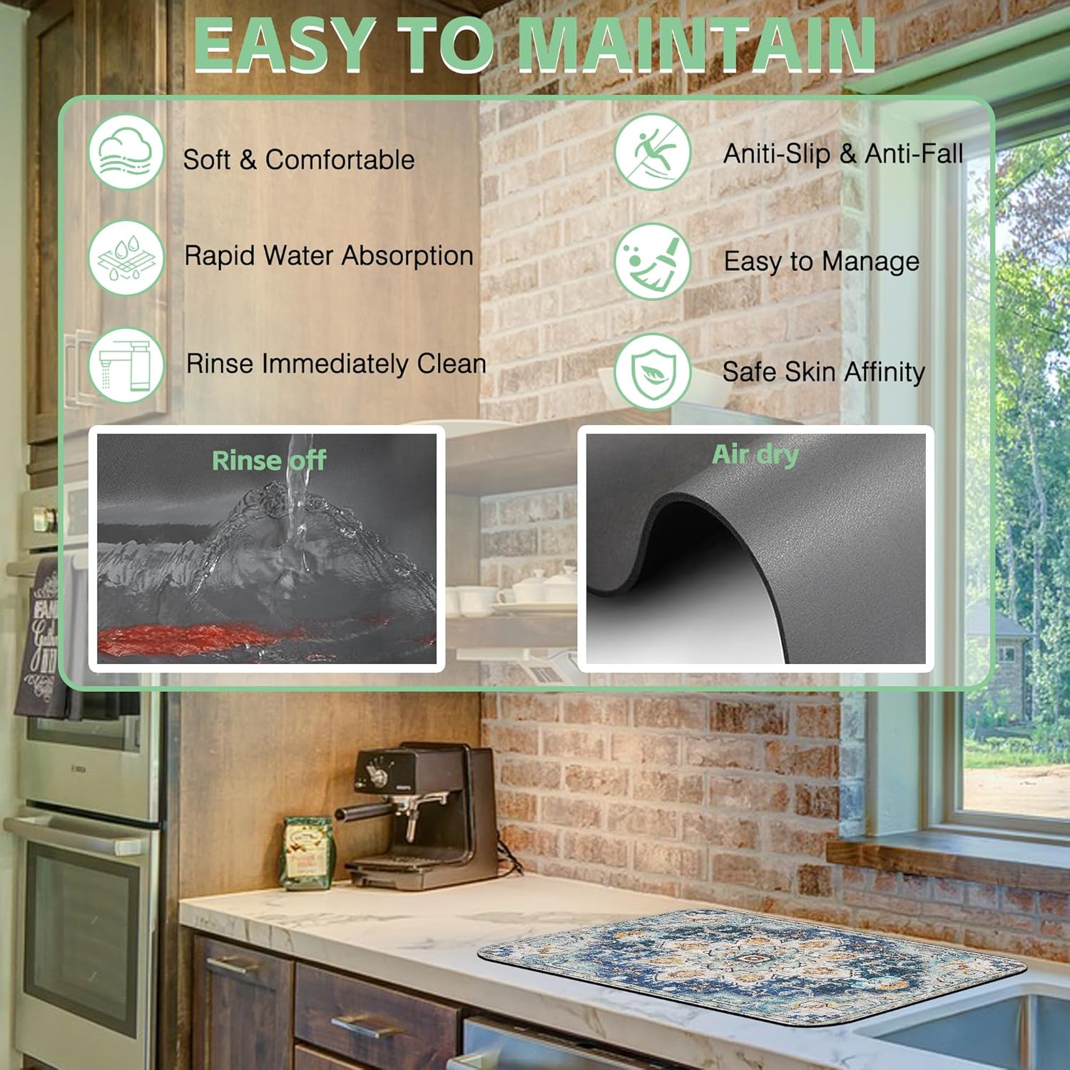 - 【Wide Application】It is not just a coffee bar mat, but also a fast drying kitchen drying mat, suitable for kitchen countertops, coffee bars, dish drain racks, perfect for air drying dishes, glasses, silverware, pots, pans. It can also be used as a pet feeding mat, door mat, bar mat and bathroom drying mat.