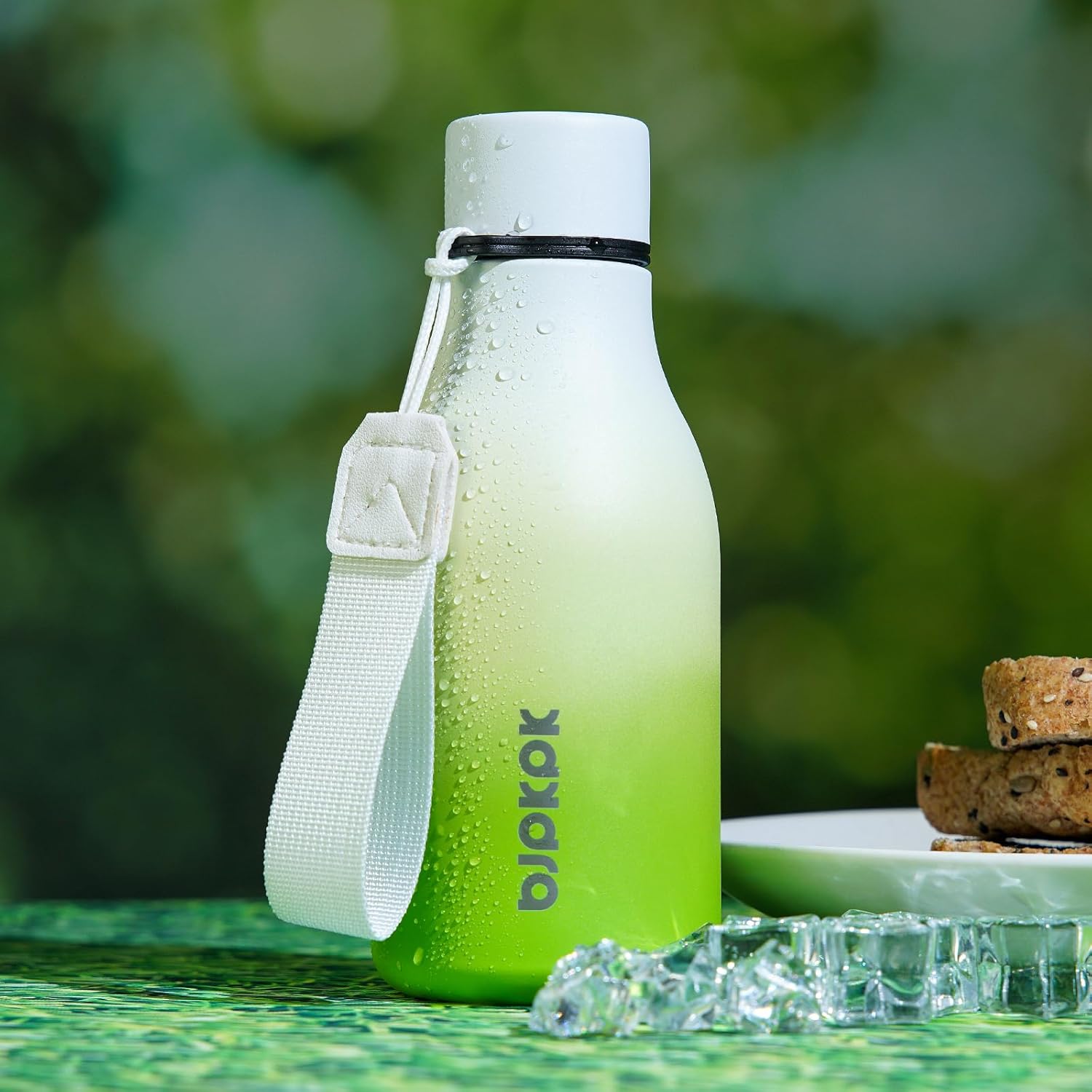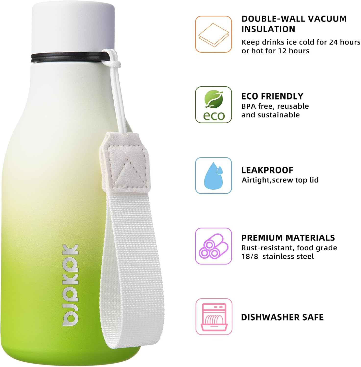 BJPKPK Insulated Water Bottles, 12oz Stainless Steel Metal Water Bottle with Strap, BPA Free Leak Proof Thermos, Mugs, Flasks, Reusable Water Bottle for Sports & Travel, Elegant Green