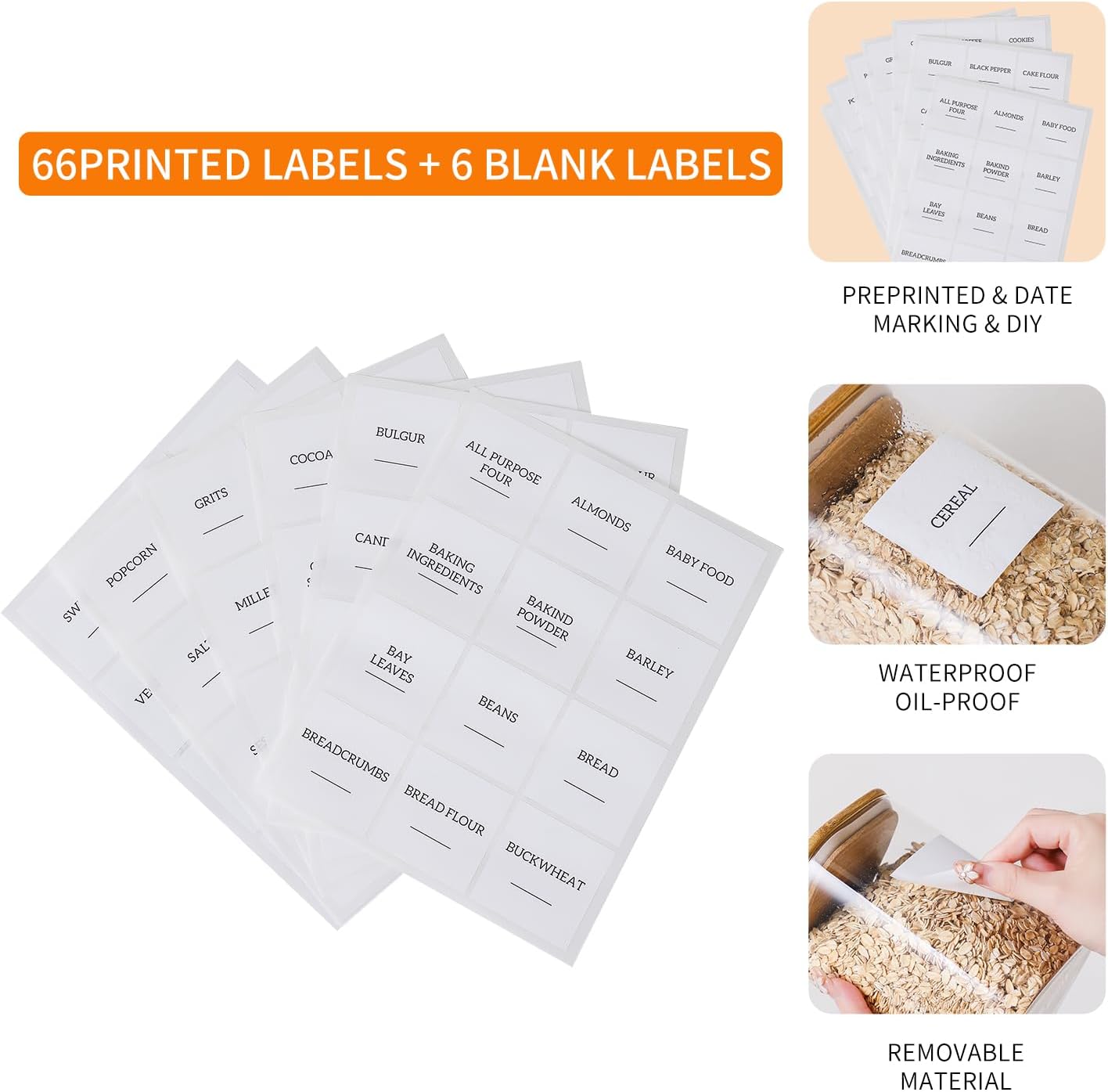 - Ideal for storing coffee beans, cookies, candy, pasta and more soild food; includes labels for organizing