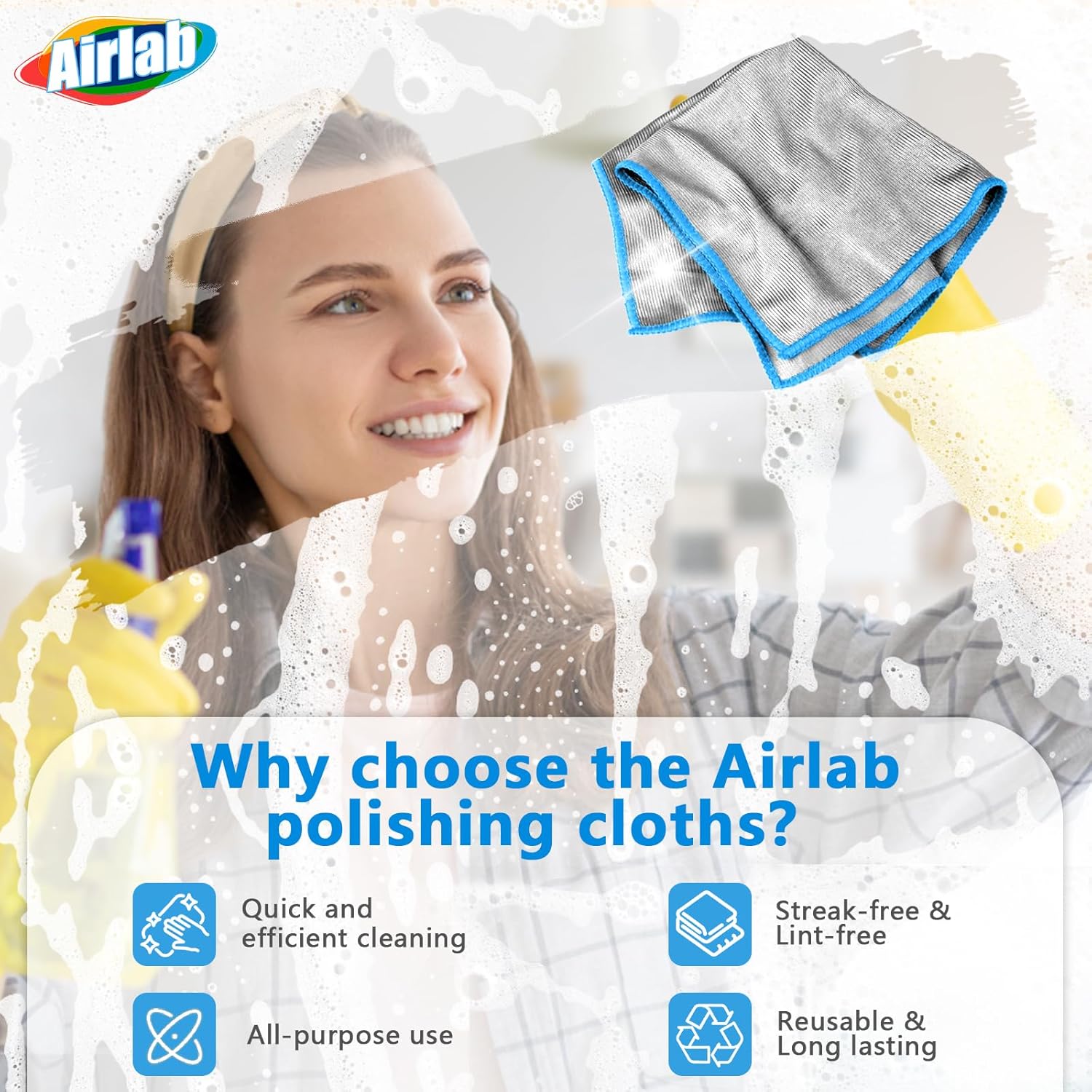 - Streak-free & Lint-free: Easily achieve a sparkling clean finish on any surface with Airlab glass cleaning cloth without leaving streaks behind. It's tough enough to tackle the dirtiest jobs, yet gentle enough to avoid scratching surfaces. Say goodbye to frustrating streaks and smudges with our cleaning rags for glass