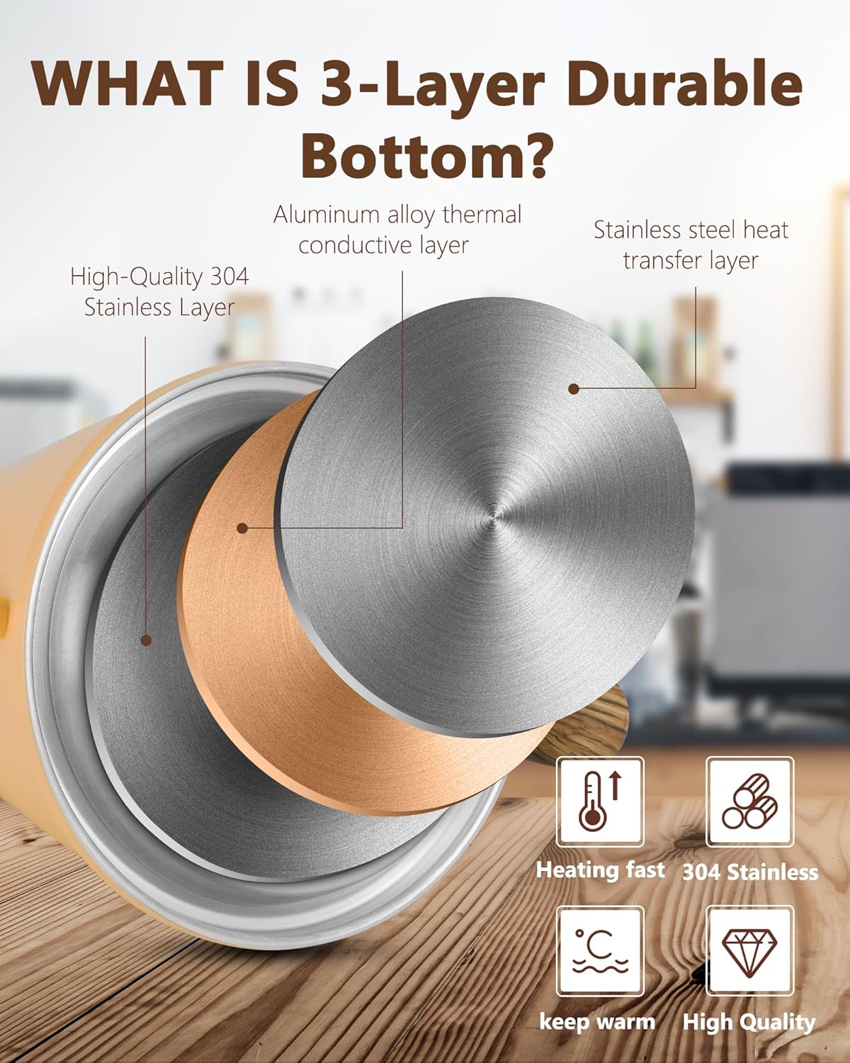 - Heat resistant handle ensures safety during pouring: Ergonomic resin handle with wood texture prevents slipping and burns; Lift and pour comfortably with bare hands for steady control; Included heat-insulating base protects the tabletop from burns
