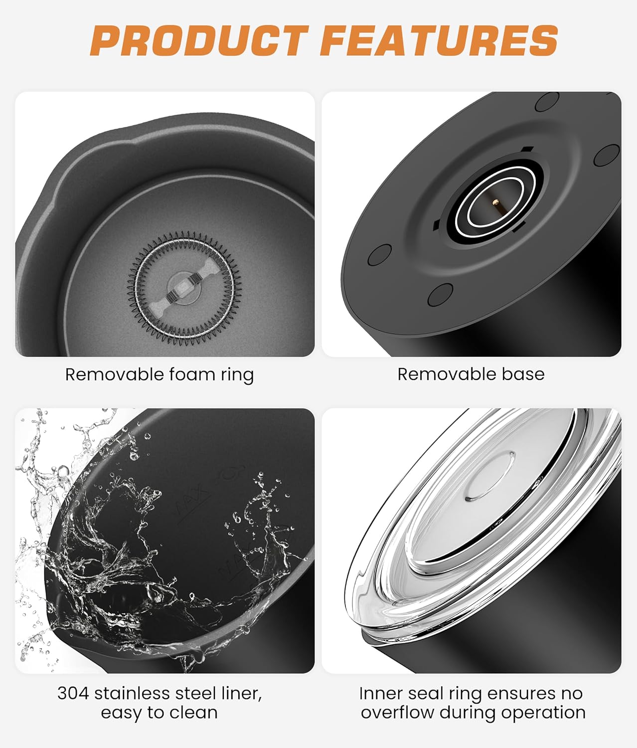 - 【4-in-1 Function Milk Frother】 Easy to operate, one button to heat milk, hot cream foam, cold foam and hot chocolate milk. It is recommended to use milk with fat content greater than 3% for better results