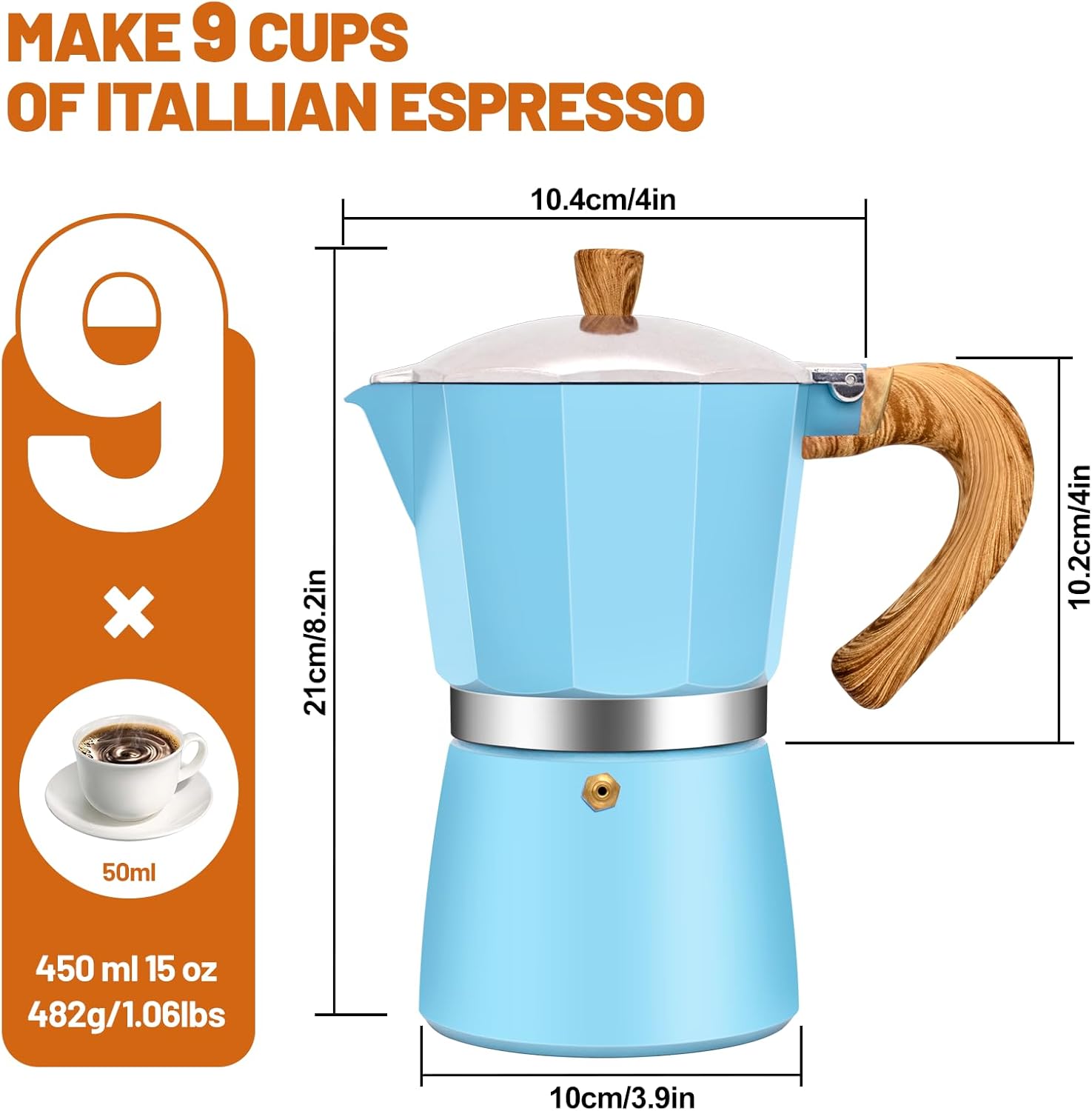 9 Cup Aluminum Espresso Stovetop Moka Pot Express Coffee Maker Percolator Italian Classic Mocha Coffee Machine for Italian and Cuban Cafe Brewing for Home & Camping 450ml 15oz