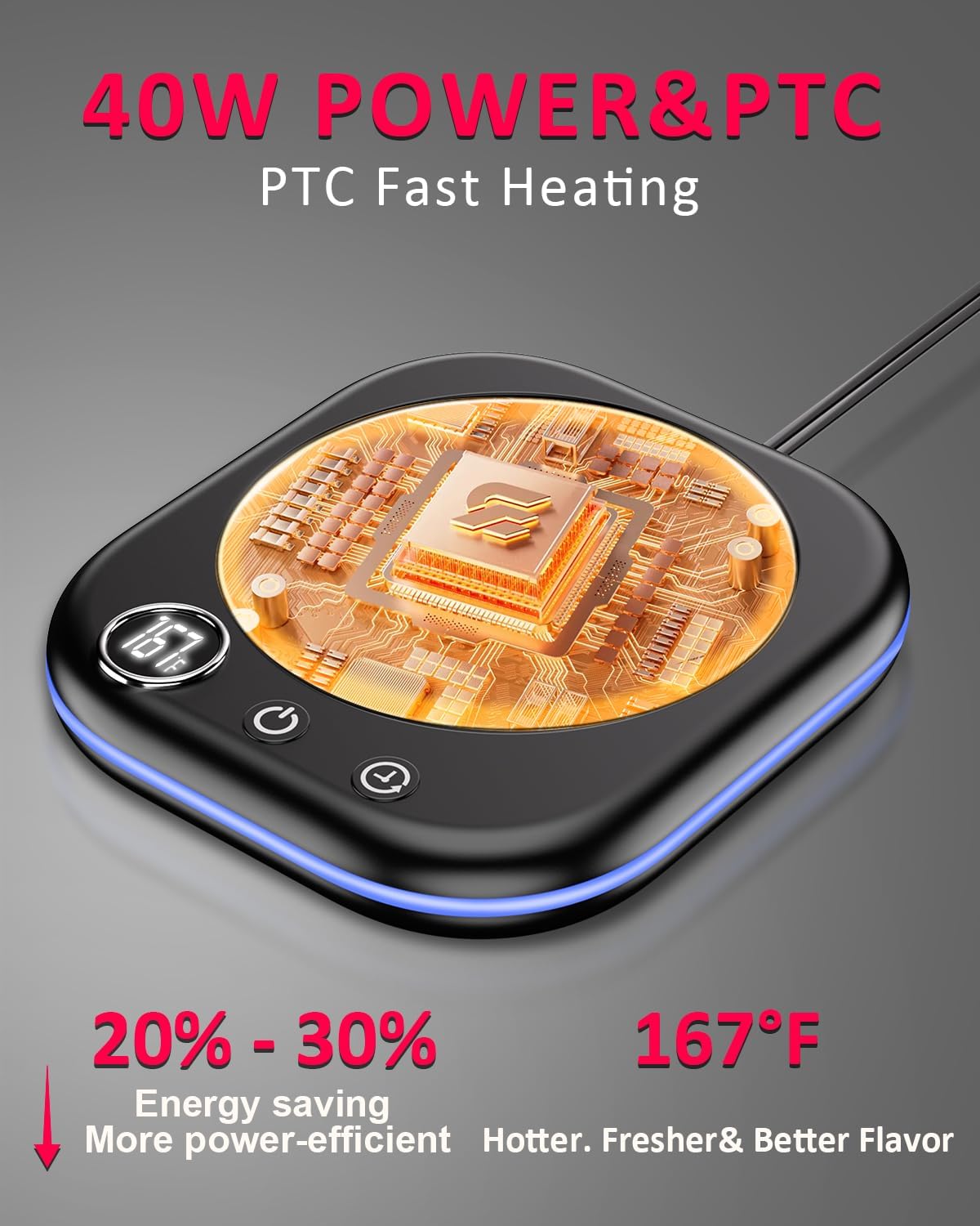 - 【Fast&Consistent Heating】 The mug warmer uses a PTC heating element to provide reliable and even heating, maintaining the optimal temperature for your beverage.
