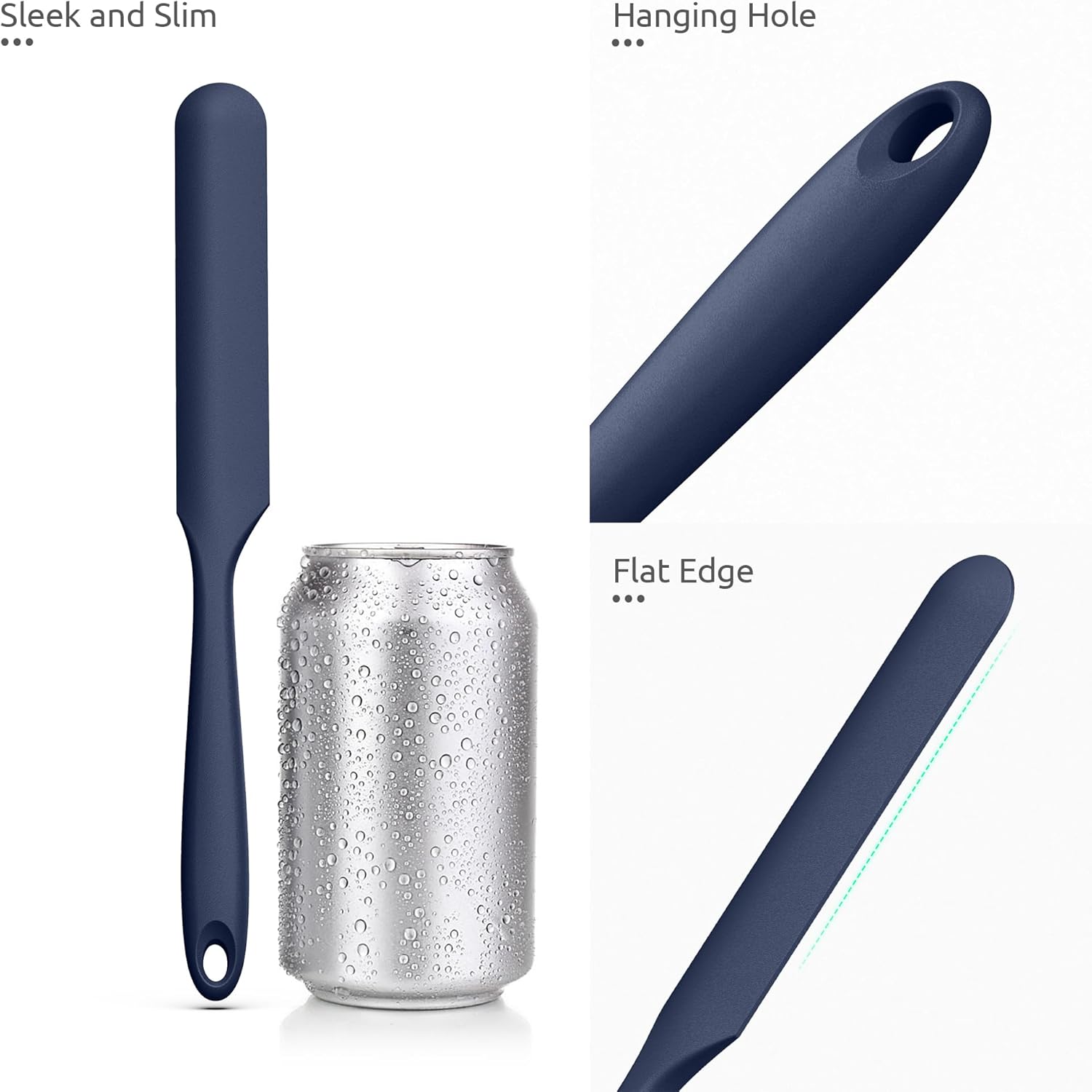 U-Taste Skinny Silicone Jar Spatula: 600ºF Heat-Resistant Food-Grade 10in Long Narrow Sourdough Stirring Stick, Seamless Flexible Peanut Butter Spreader for Scraping Icing Cream, Jam (Midnight Blue)