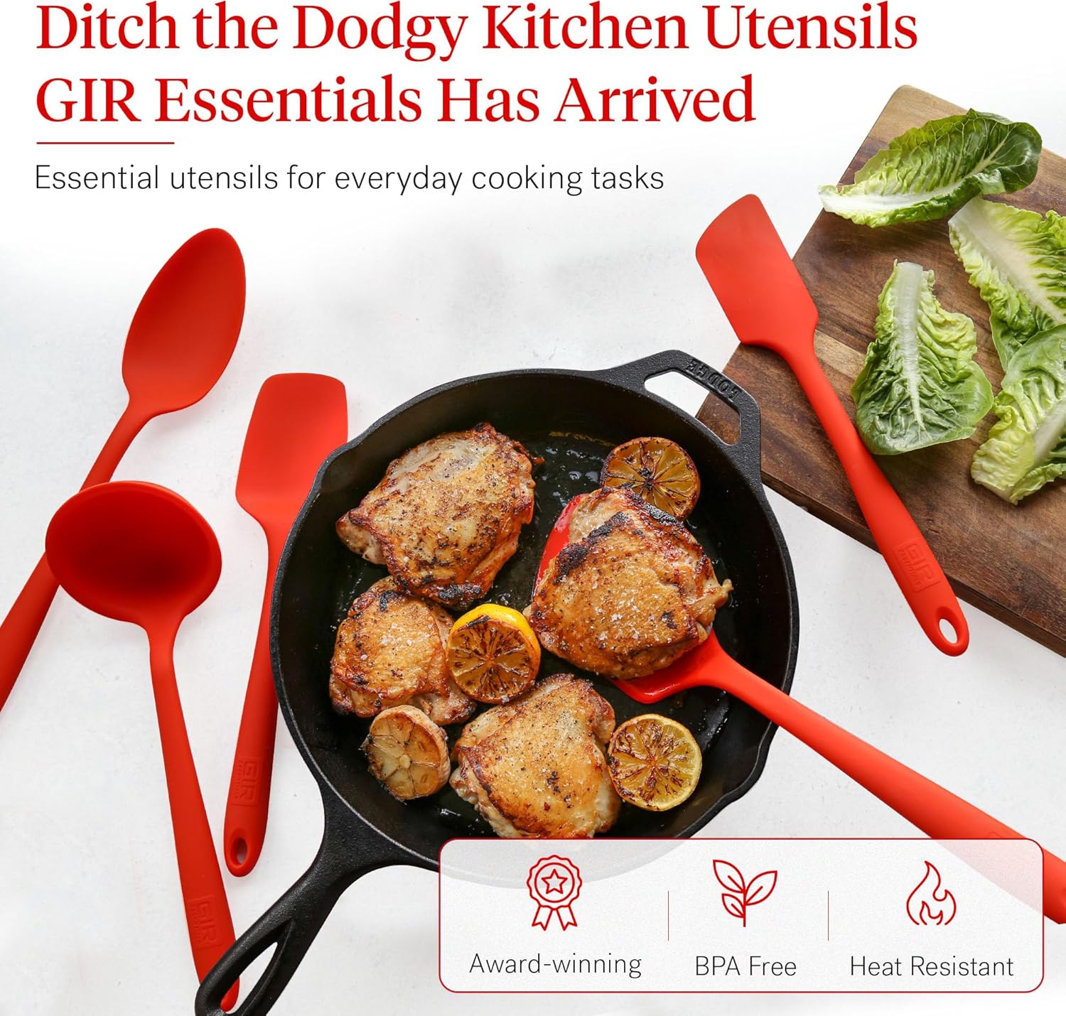 GIR: Get It Right 5-Piece Silicone Spatula & Utensil Set - Medium Fire Red - Kitchen Essentials with Heat-Resistant Non-Stick Tools - Dishwasher-Friendly