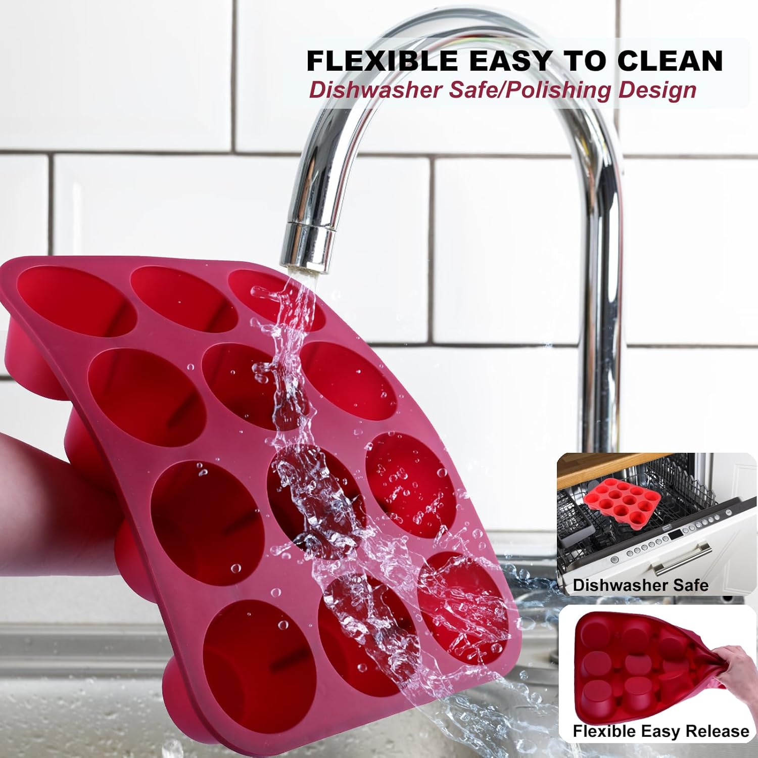 Nalchios Silicone Muffin Pan 12 Cups Deep Jumno, Chocolate Molds Silicone, Nonstick BPA Free Silicone Baking Molds, Dishwasher & Microwave Safe Muffin Tin, Easy To Use and Clean Candy Molds