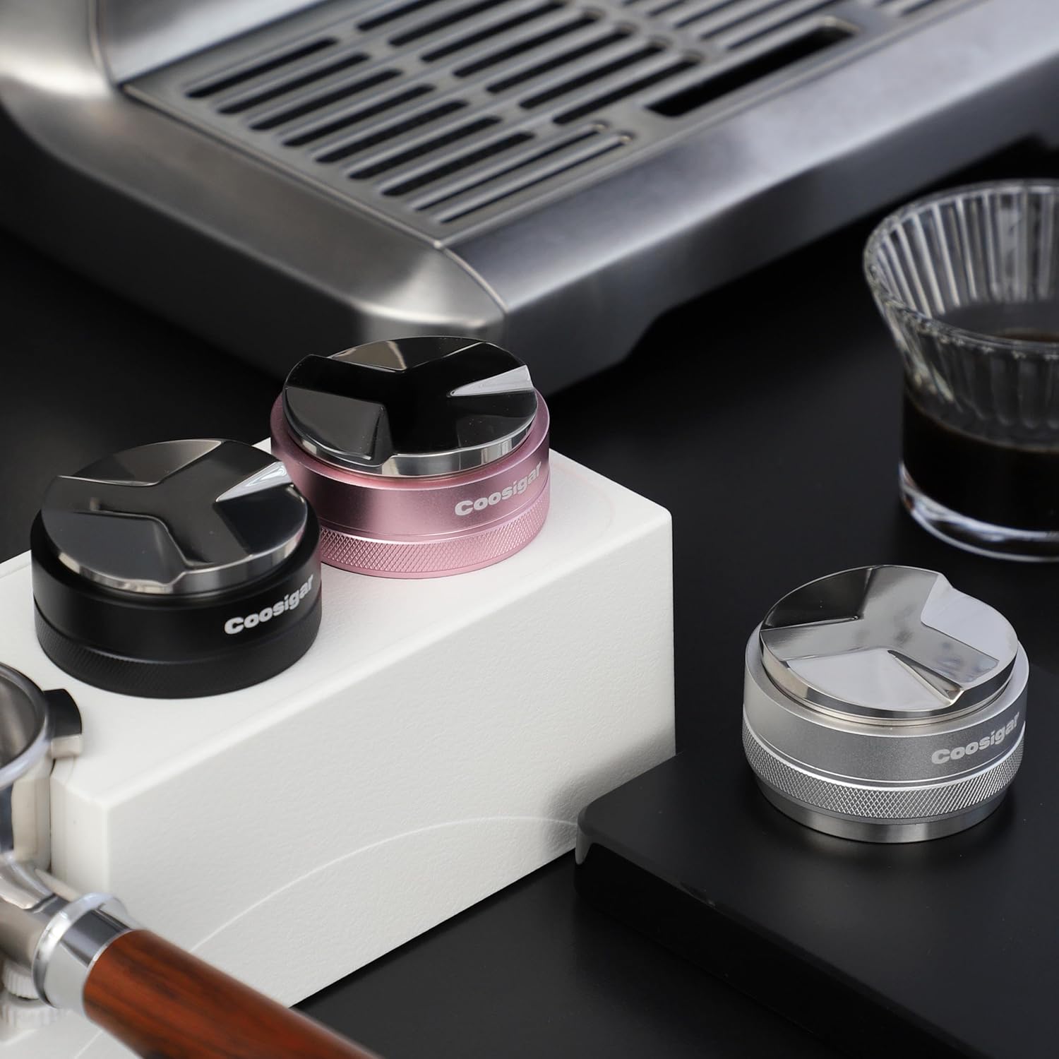 - ใ๐ ๐จ๐จ๐-๐๐ซ๐๐๐ ๐๐ญ๐๐ข๐ง๐ฅ๐๐ฌ๐ฌ ๐๐ญ๐๐๐ฅใCoosigar coffee distributor/tamper base is made of 100% food-grade stainless steel, ensuring safety,health, and easy cleaning. We adhere to the design philosophy of quality, functionality, and user experience, with the handle crafted from stylish and durable high quality aluminum alloy. It conforms to ergonomics, providing you with a stable and comfortable gripping experience and an excellent tactile sensation.