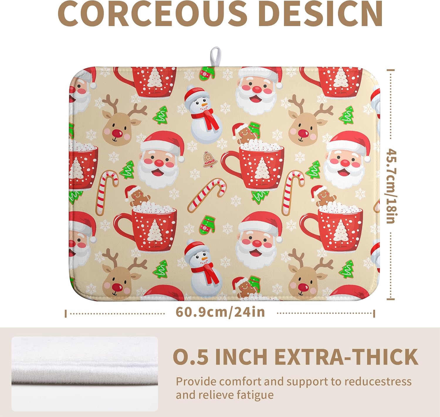 - [Space Saving]: This lightweight Christmas dish drying pad for kitchen counter has a webbing lanyard in the middle of the horizontal side for hanging, and Christmas large dish drying mat can also be folded and thrown into a drawer or stuffed elsewhere.