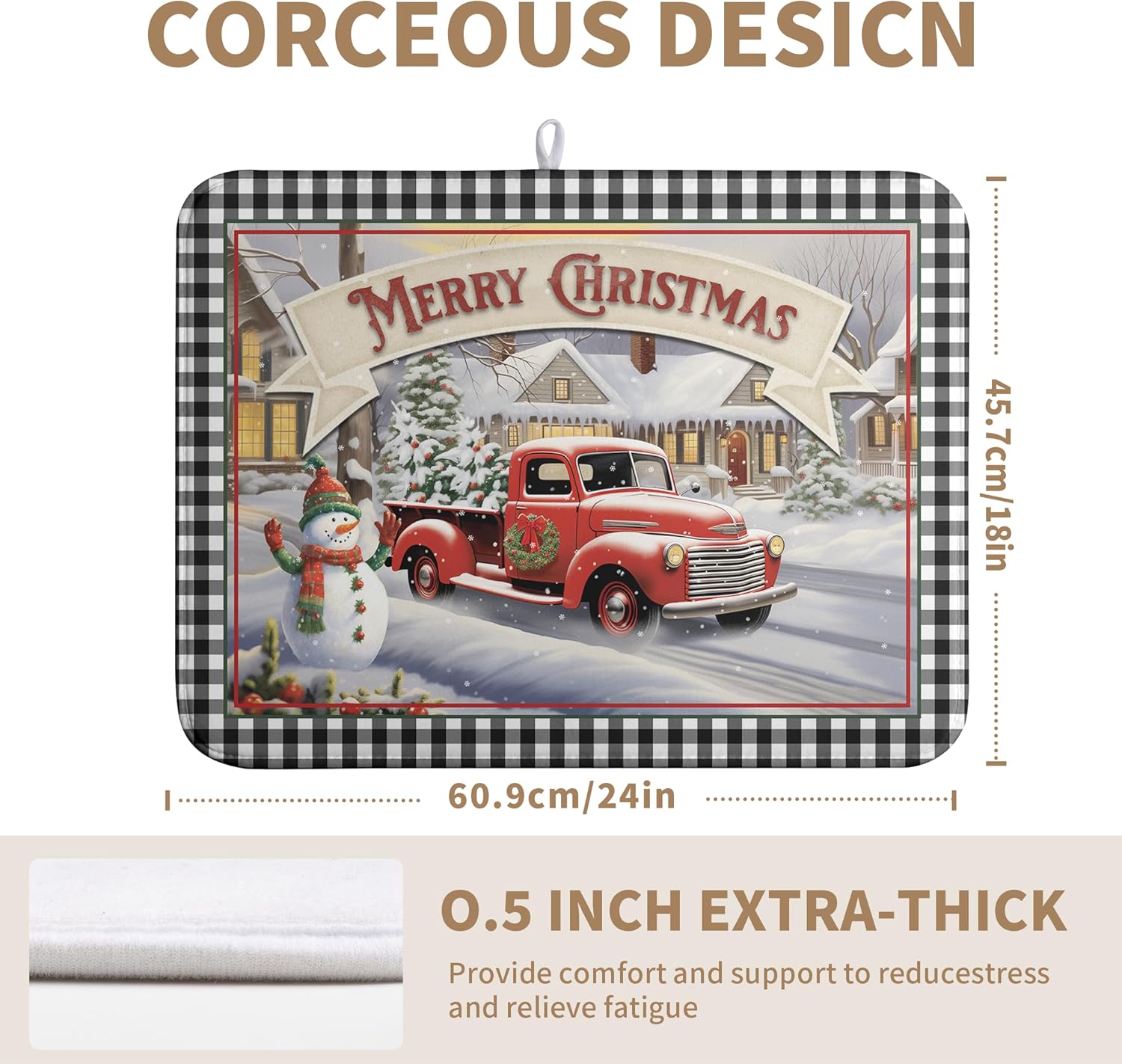 - [Multi-functional]: This Christmas winter truck tree dish drying mat can be placed under the dish rack to collect dripping water to keep the counter dry and clean, or you can place bottles, pots, plates, bowls, cups and other utensils directly on the mat. Christmas winter kitchen drying mat can also be placed under the coffee machine to absorb spilled coffee.