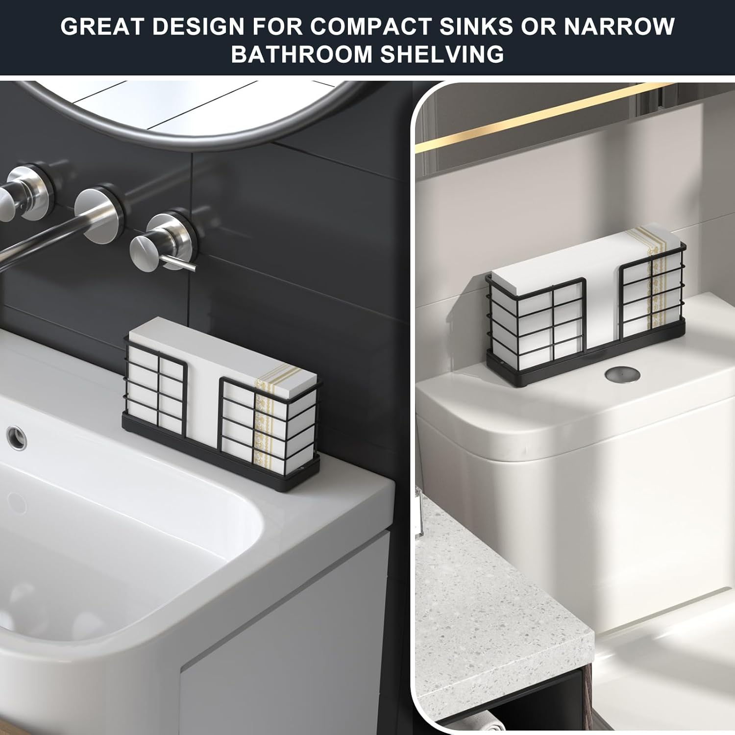- Quite Versatile: This guest towel holder hold paper towels in the guest bathroom for hand drying; hold paper bath towels for your powder room, easy to retrieve towel when needed; It can also be used as a lunch napkin holder, looking very nice on the dining table