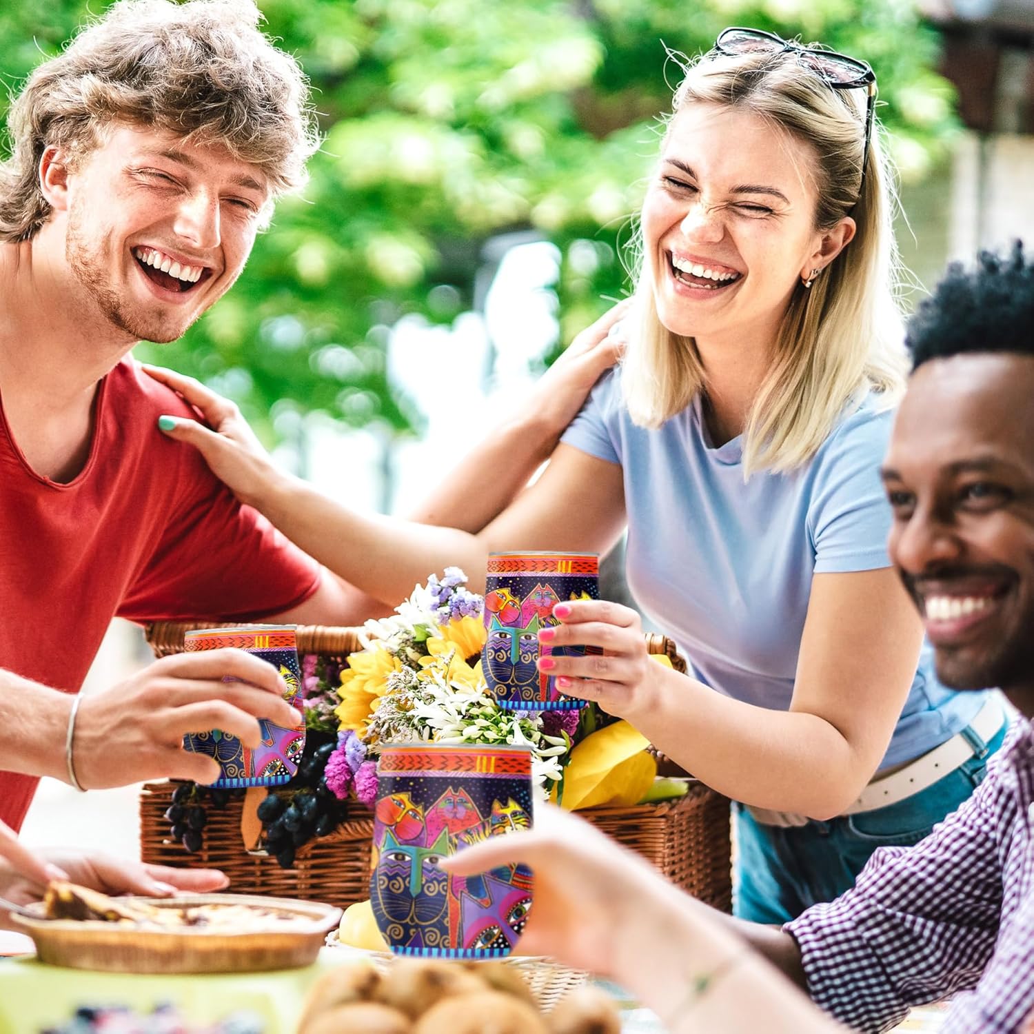 - STYLISH AND VERSATILE: The sleek, modern design of this water Tumbler makes it a fashionable accessory for any occasion. Whether you're hitting the gym, the office, school, or the trails, it's the perfect choice. Stunning rendering of Laurel Burch's famous painting, "Fantasticats." The design is captured with an artist’s eye for detail, light, and color.