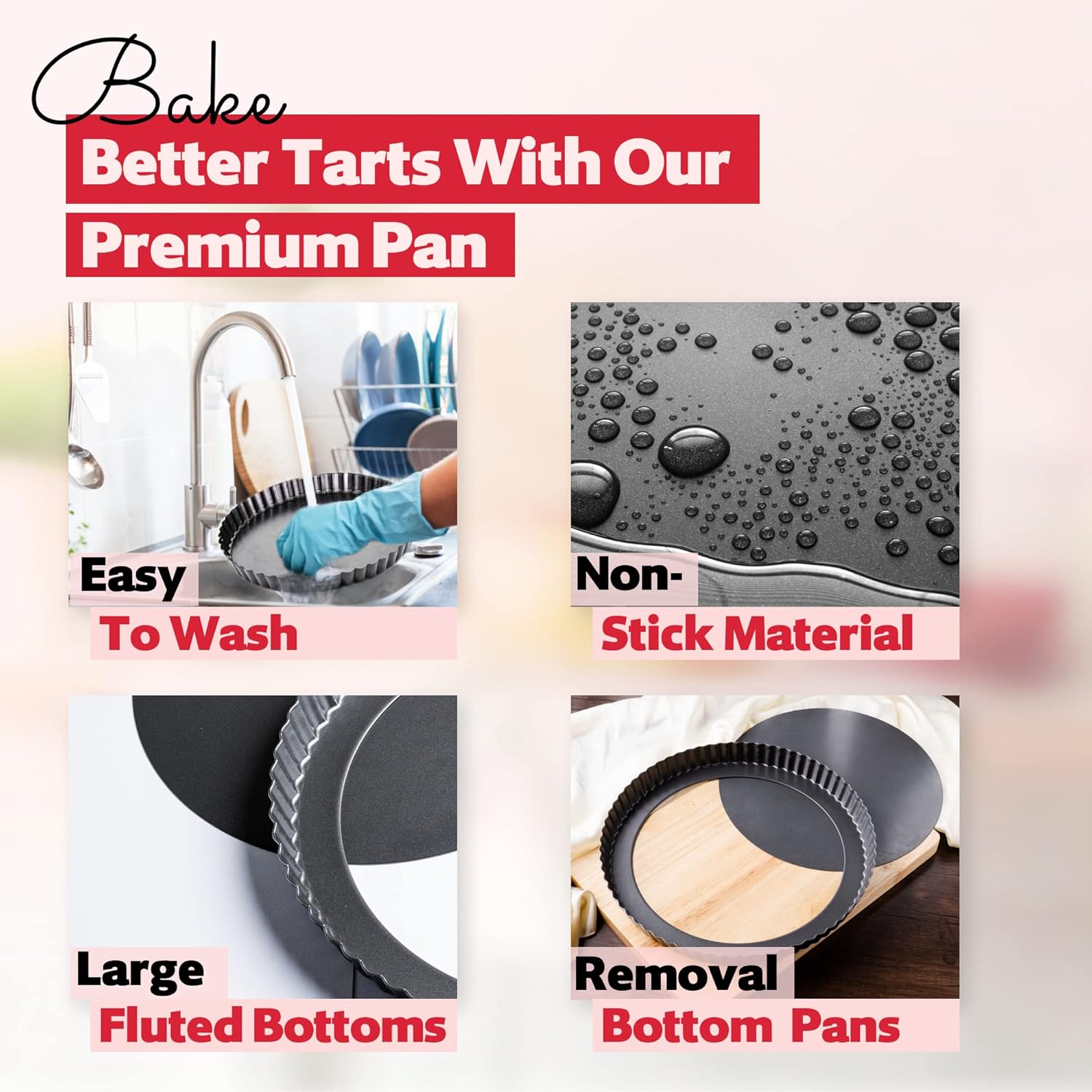 - ❖ Extend Your Products Life: The tart molds for baking are easy to clean in the dishwasher, but washing them by hand in soapy water is best to extend their life. Do not use steel wool or abrasive cleaners on the surface, as they will damage the coating