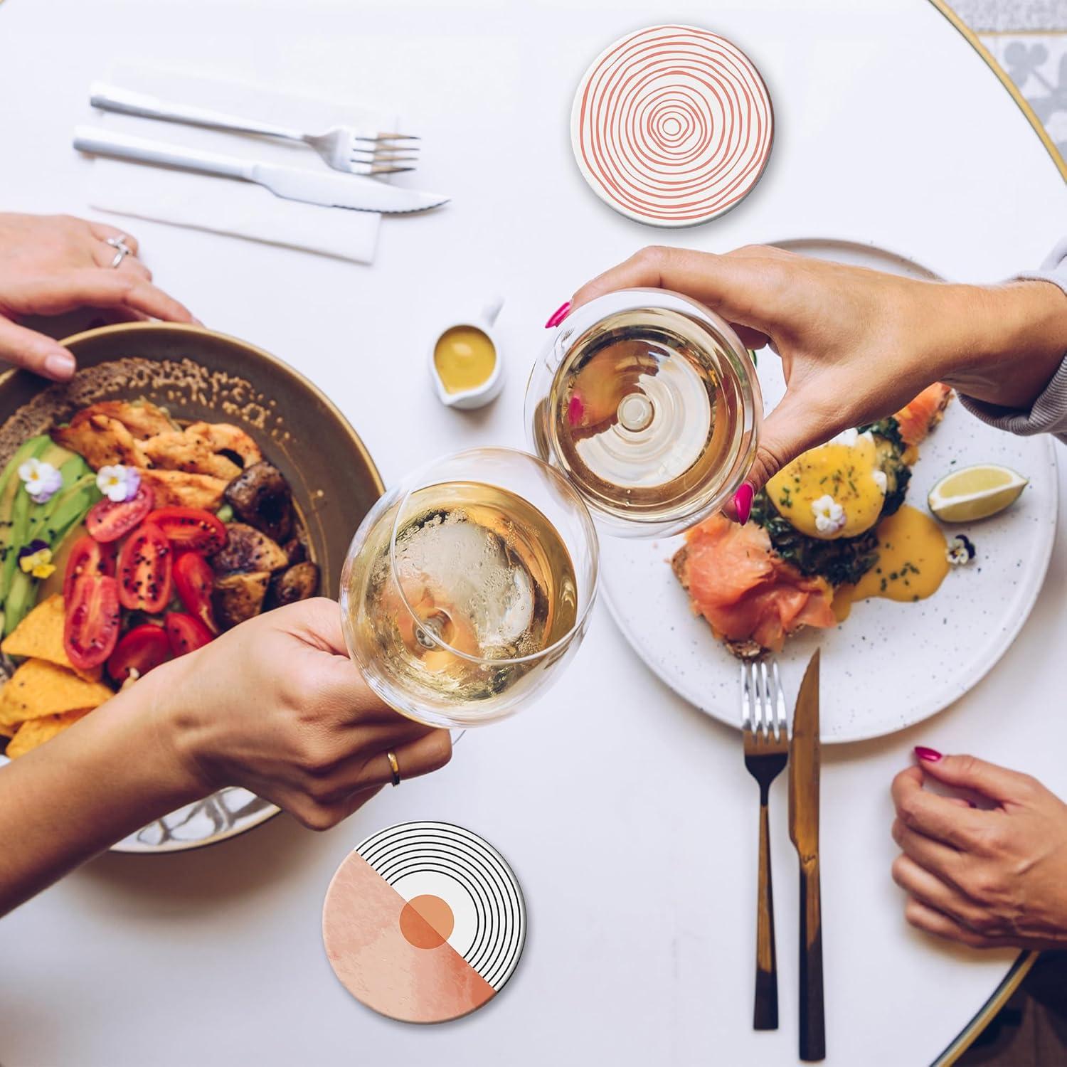 - Water-Absorbent And Cork Base: Crafted From Ceramic With a Cork Base, These Coasters Prevent Scratches And Water Stains While Providing a Non-Slip Effect For Your Drinks.