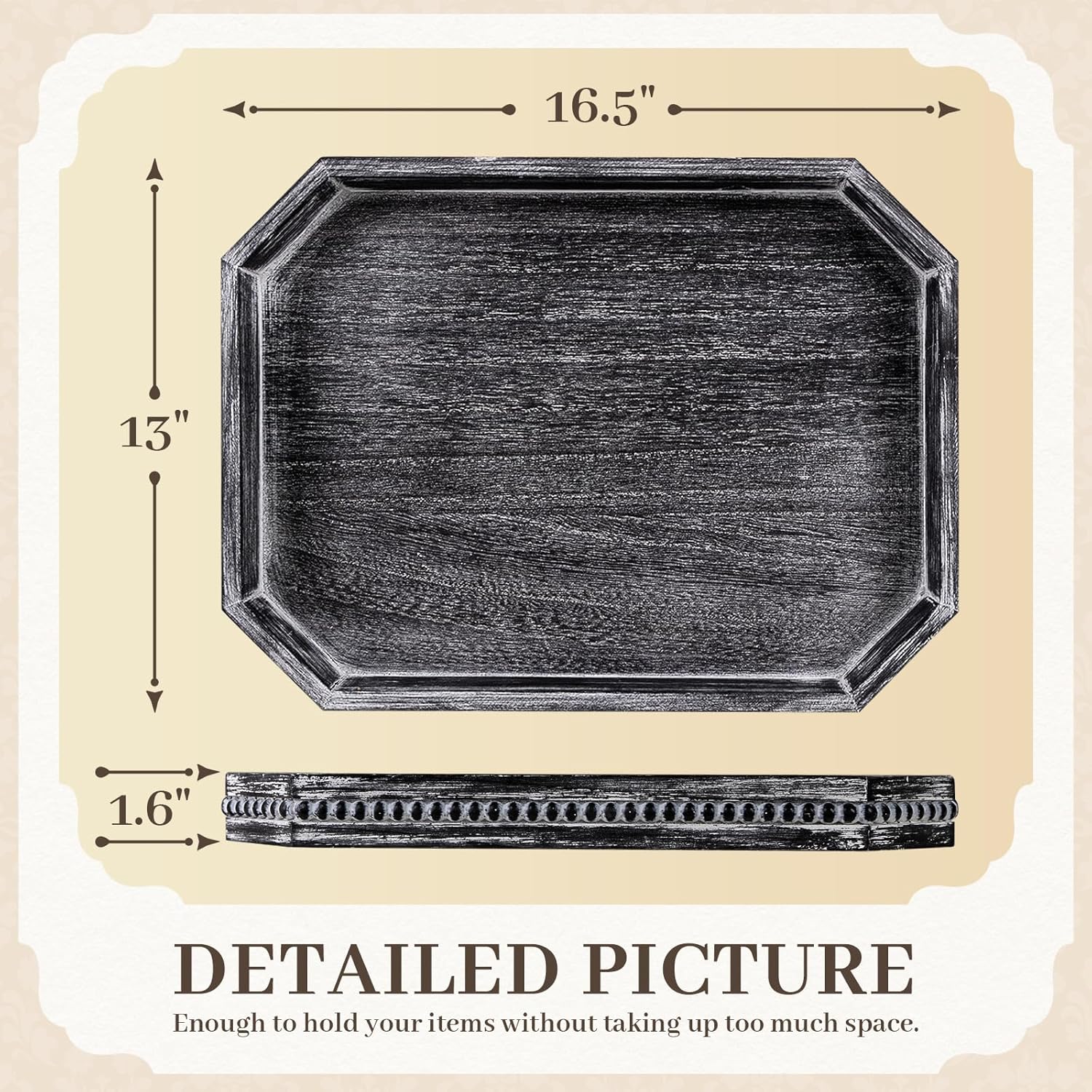 - [Carefully Designed]: He's not an oversized tray just larger than the regular siz, Each Farmhouse Decorative Tray is handcrafted by skilled artisans. Designed to be 1” larger than the usual regular sized trays of 16.5“ x 13” x 1.6” wooden tray is not only more practical, but also beautifully decorated, adding a unique and elegant touch to your home.