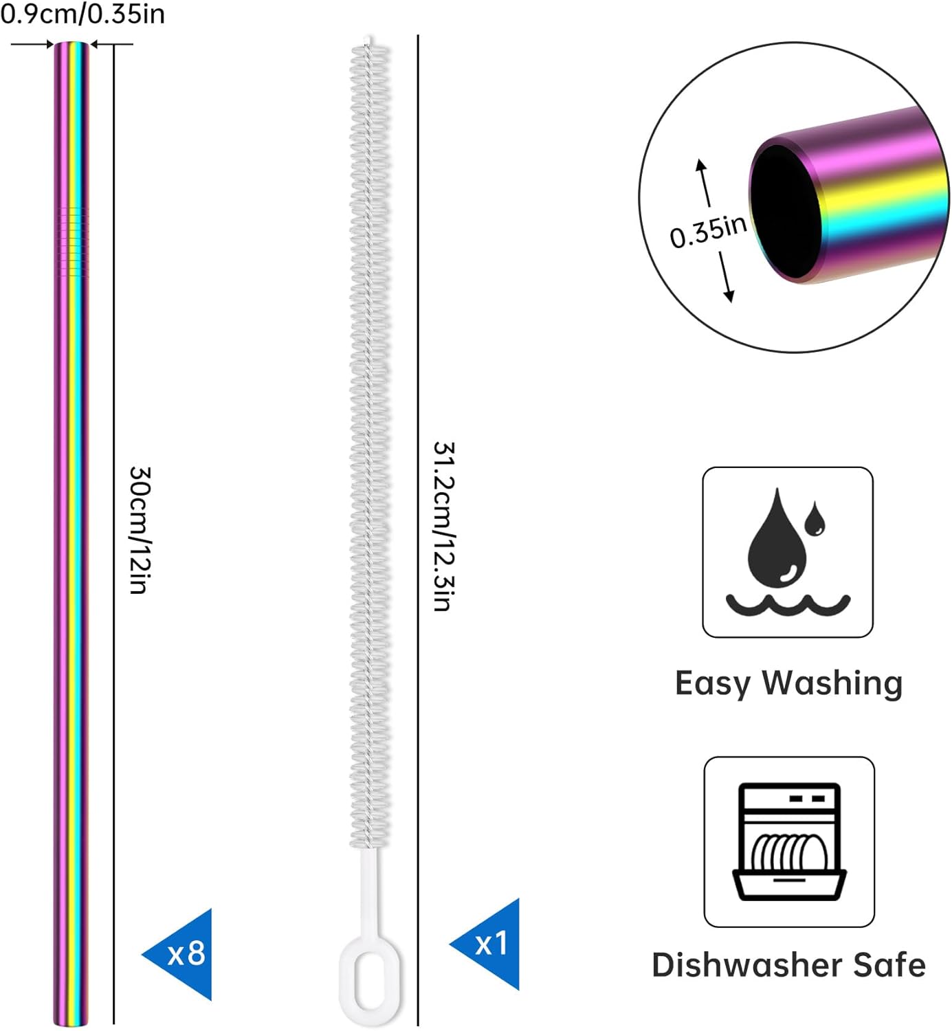 - 🍹 Exceptional Value Set - This fantastic package includes 8 straight straws (12" x 0.35"),complemented by 1 additional extra-long cleaning brushes. Offering superior convenience and practicality, this set is a must-have for any household.
