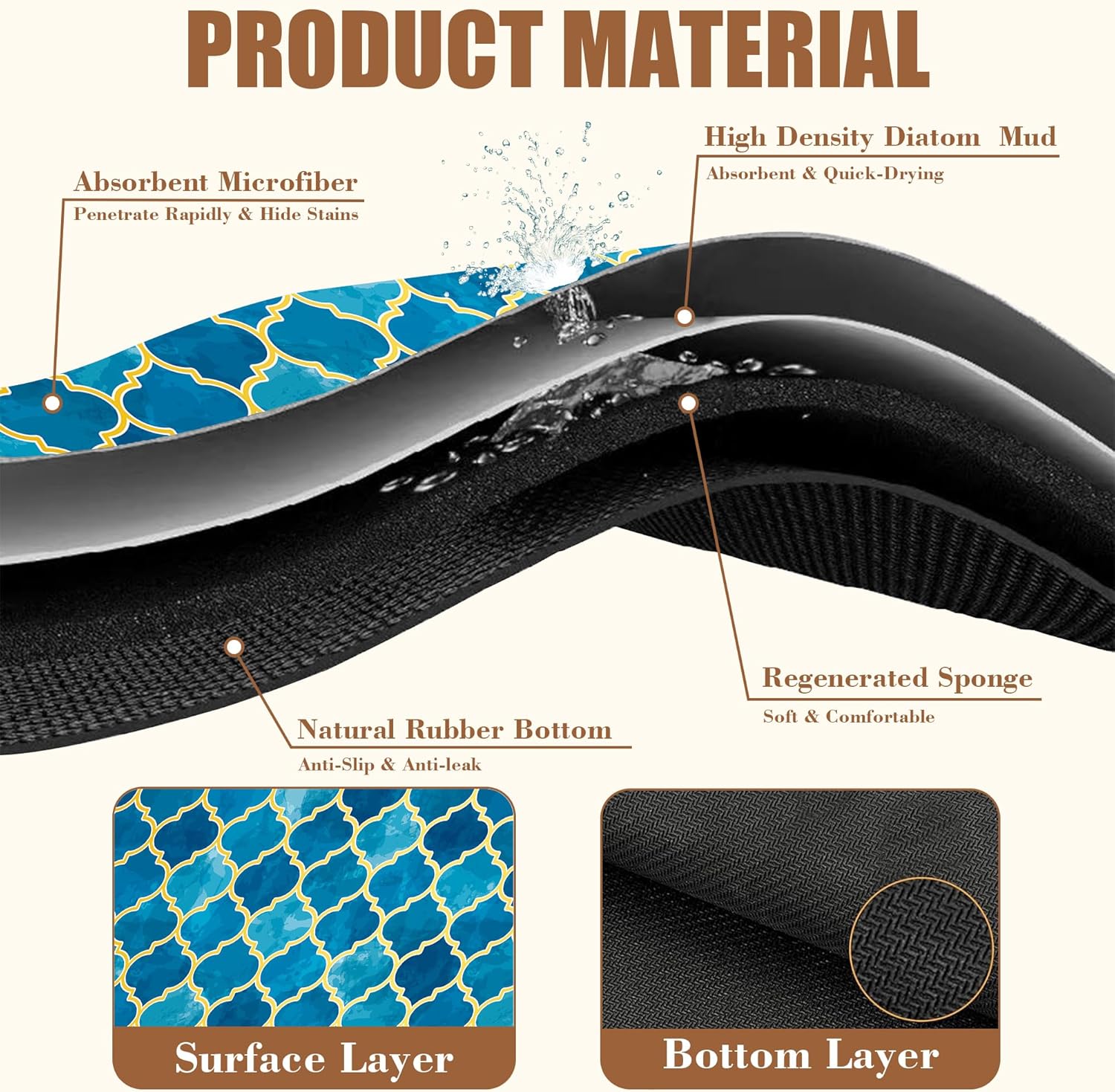 Dish Drying Mat Blue Moroccan Tile Coffee Bar Mat for Countertop Absorbent Hide Stain Rubber Backed Dish Drainer Rack Pad Espresso Machine Table Accessories Dining Room Decor 11.8 x 19.7 Inch