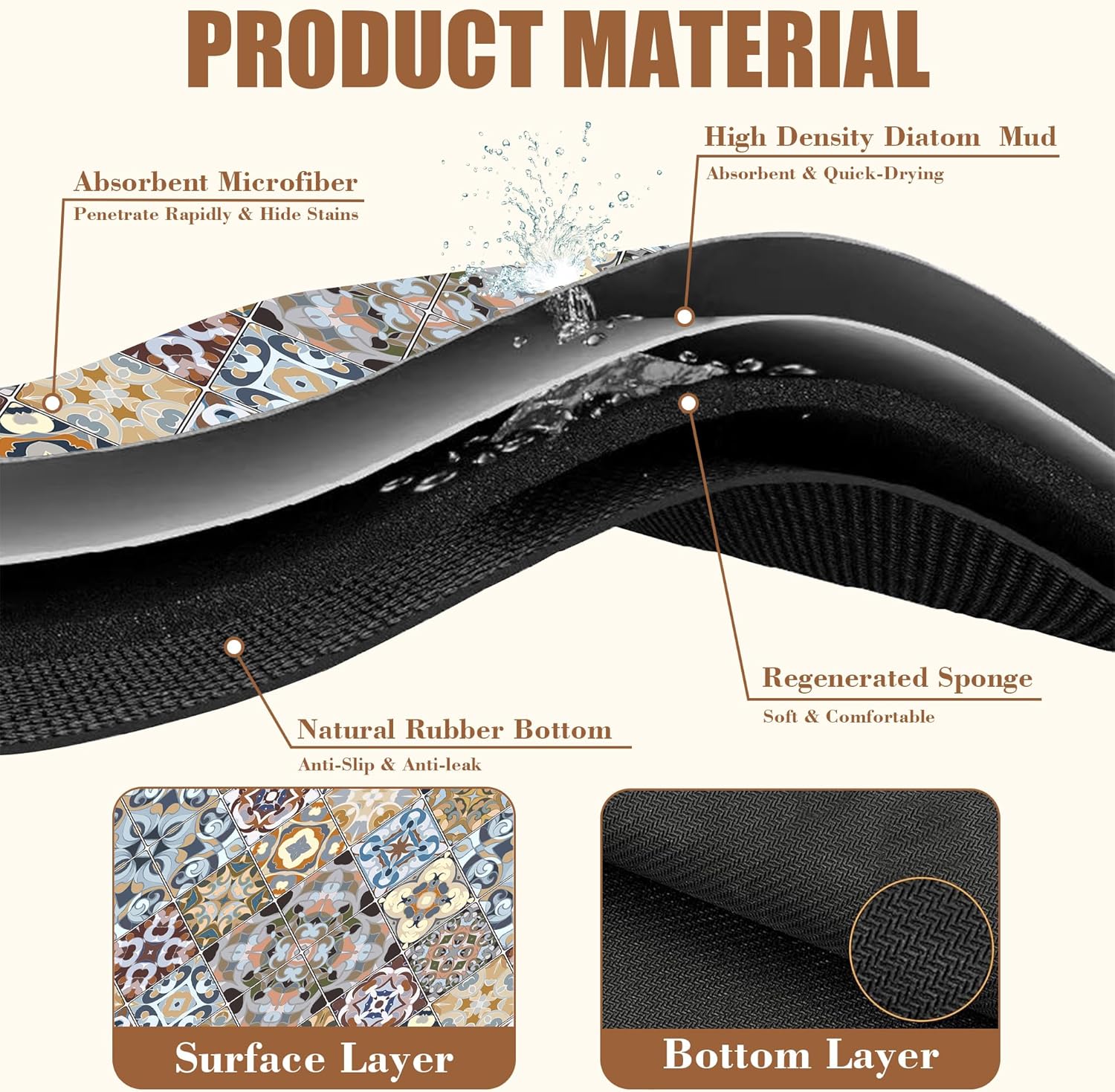 Retro Colorful Tiles Dish Drying Mat for Kitchen Counter Floral Coffee Mat Hide Stain Absorbent Drying Rack Pad with Rubber Backed Espresso Machine Coffee Bar Accessories 15.7 x 23.6 Inch