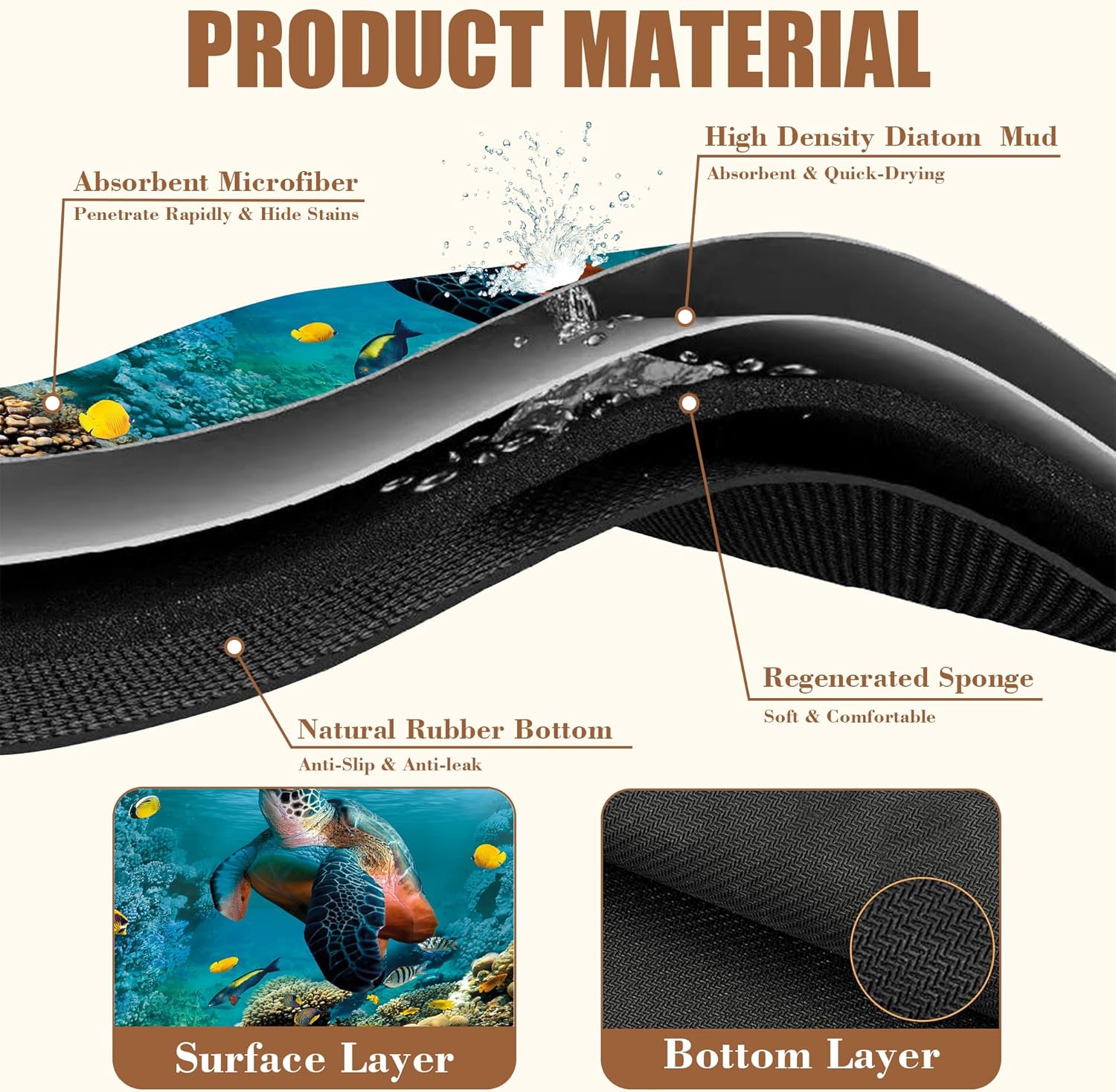 Sea Turtle Coffee Mat Absorbent Dish Drying Mat for Kitchen Counter Hide Stain Rubber Backed Coffee Bar Accessories Fit Under Espresso Machine Dish Rack, 15.7 x 23.6 Inch