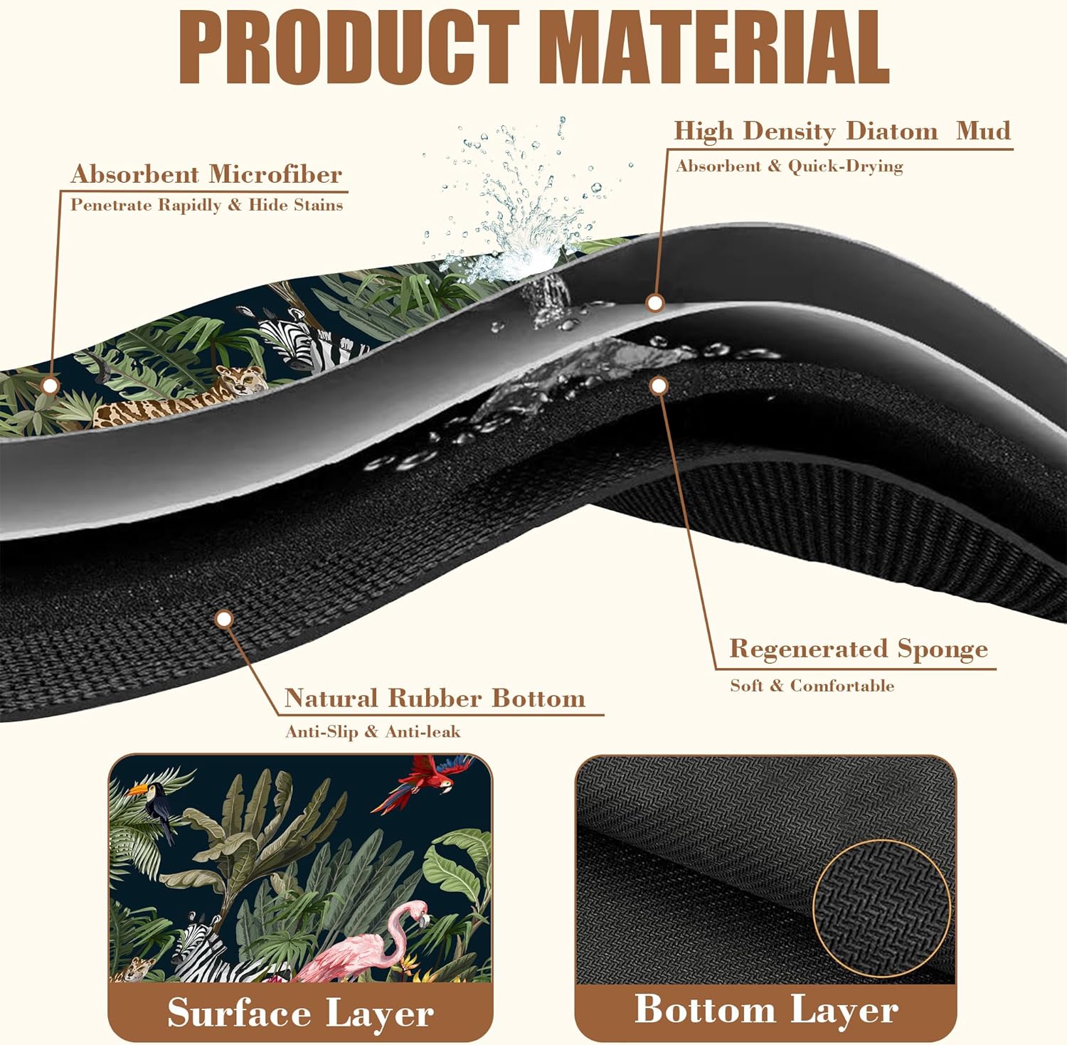 Jungle Animals Coffee Mat Tropical Dish Drying Mat for Kitchen Counter Absorbent Hide Stain Rubber Backed Coffee Bar Accessories Fit Under Espresso Machine Cafe Table, 15.7 x 23.6 Inch