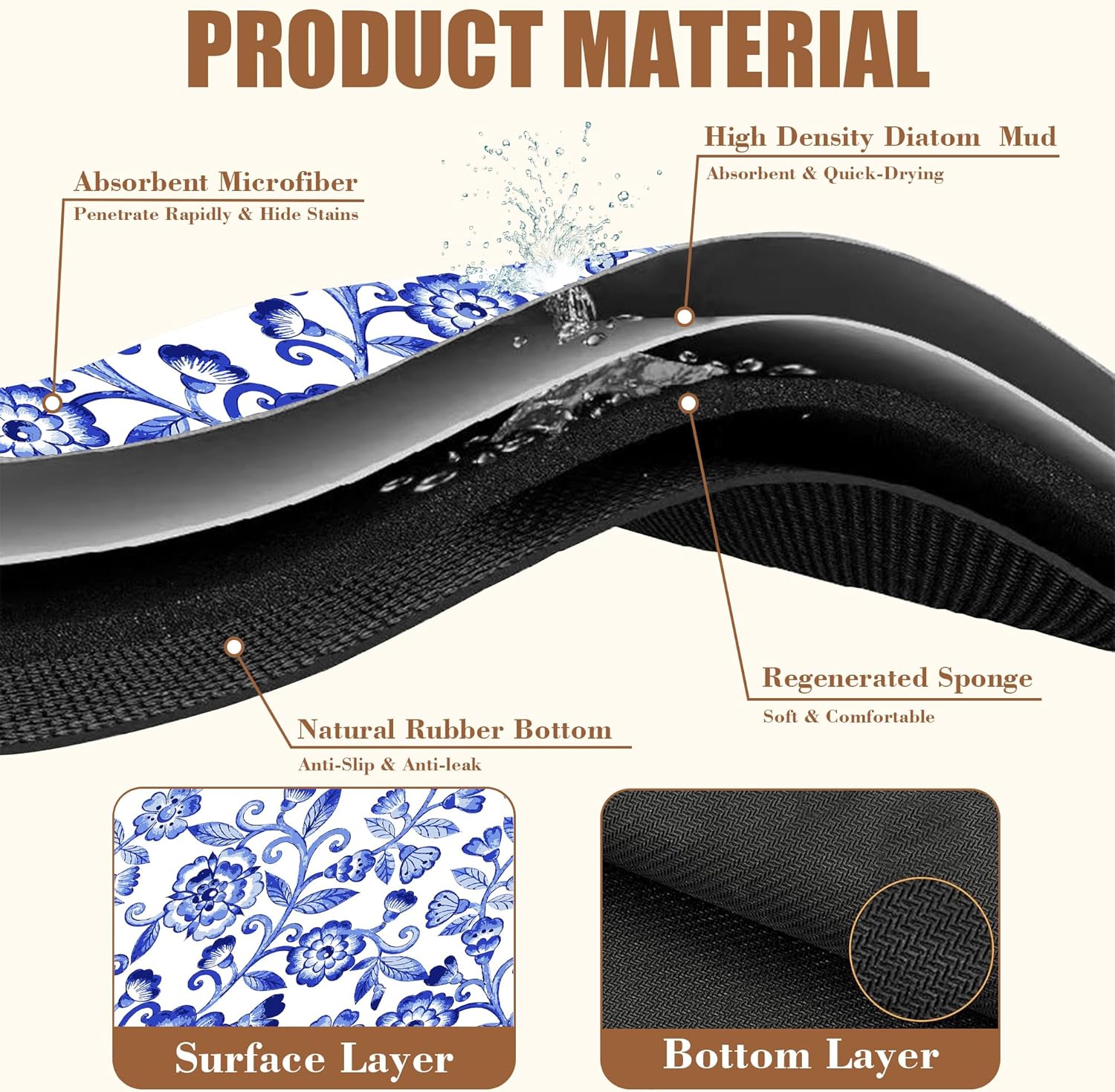 Dish Drying Mat Watercolor Blue Flowers Coffee Bar Mat for Countertop - Absorbent, Rubber Backed, Hide Stain Dish Drainer Rack - Coffee Maker Pot Dining Room Decor 15.7 x 23.6 Inch