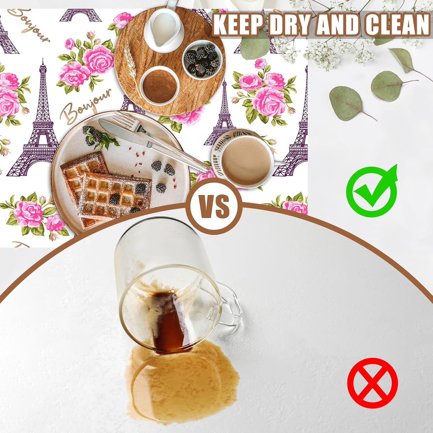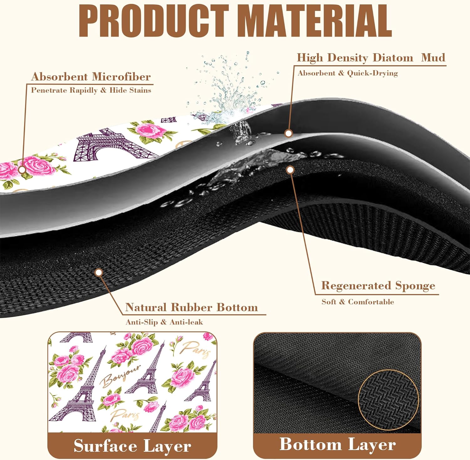 Eiffel Tower with Pink Rose Coffee Mat Absorbent Dish Drying Mat for Kitchen Counter Hide Stain Rubber Backed Coffee Bar Accessories Fit Under Espresso Machine Dish Drainer 11.8 x 19.7 Inch