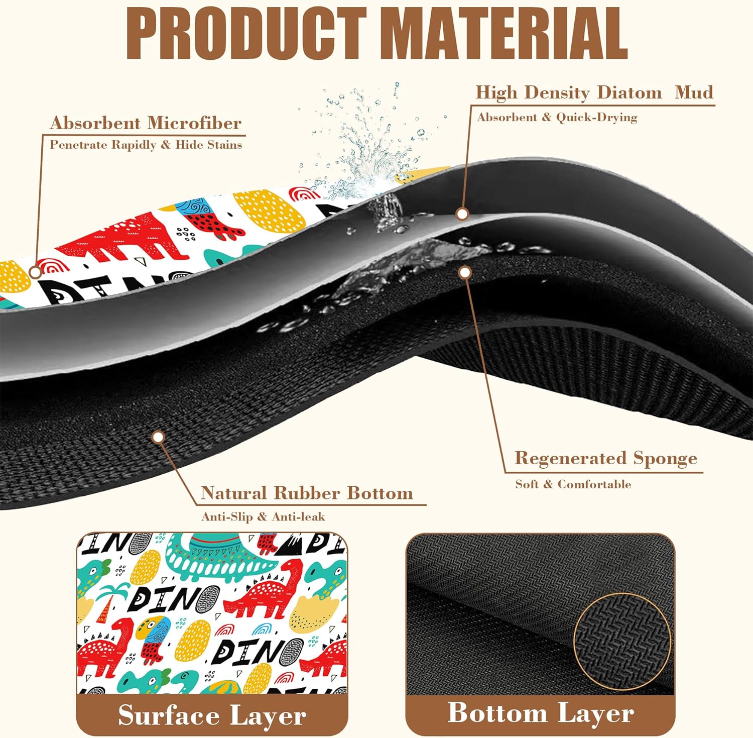 Dinosaur with Palms and Eggs Coffee Mat Absorbent Dish Drying Mat for Kitchen Counter Hide Stain Rubber Backed Coffee Bar Accessories Fit Under Espresso Machine Dish Drainer, 15.7 x 23.6 Inch
