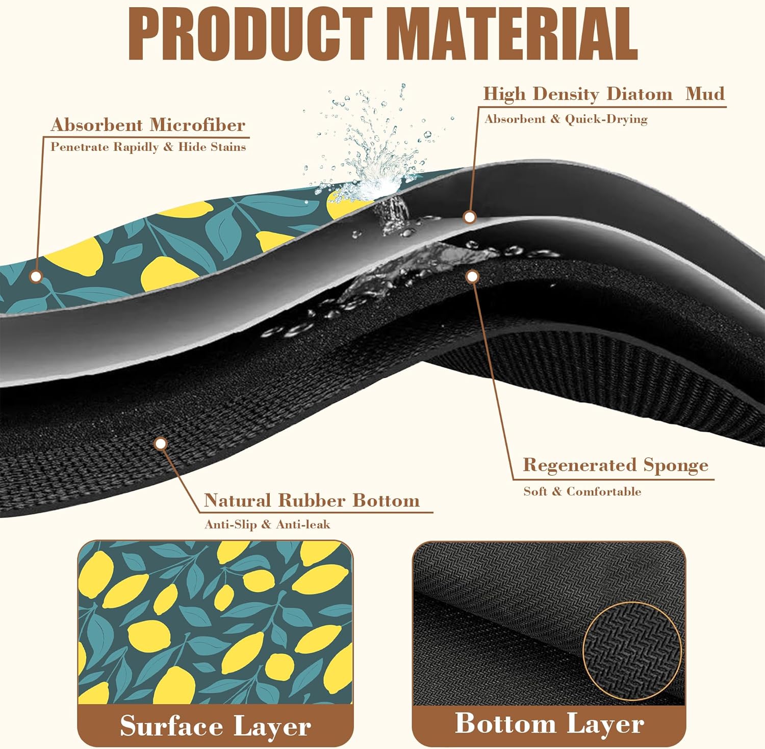 - 【Non-Slip Rubber Base】The bottom of the coffee bar mat has a non-slip textured natural rubber that can firmly grip the tabletop. Just place the coffee machine or cutlery on top, and the non-slip bottom will hold it firmly in place, also preventing liquids from seeping into the tabletop and leaving stains