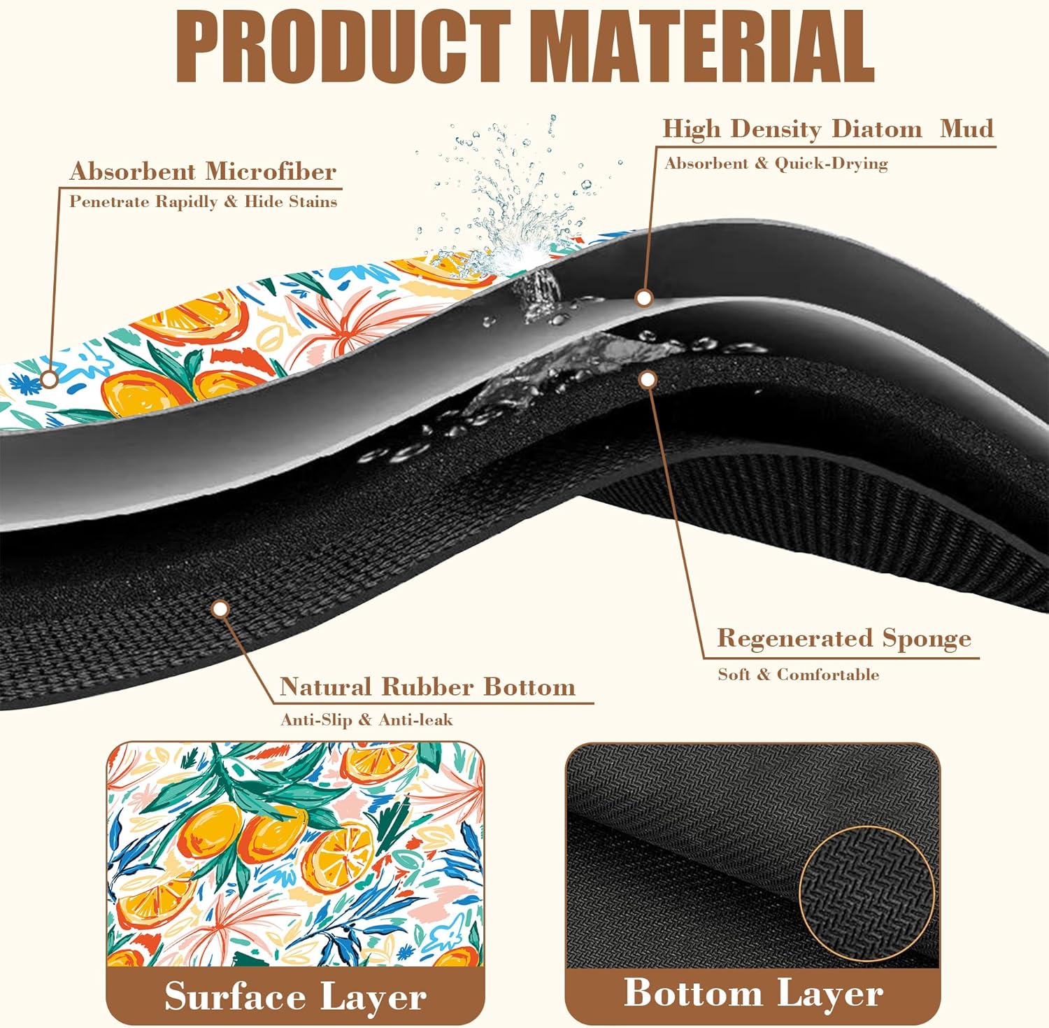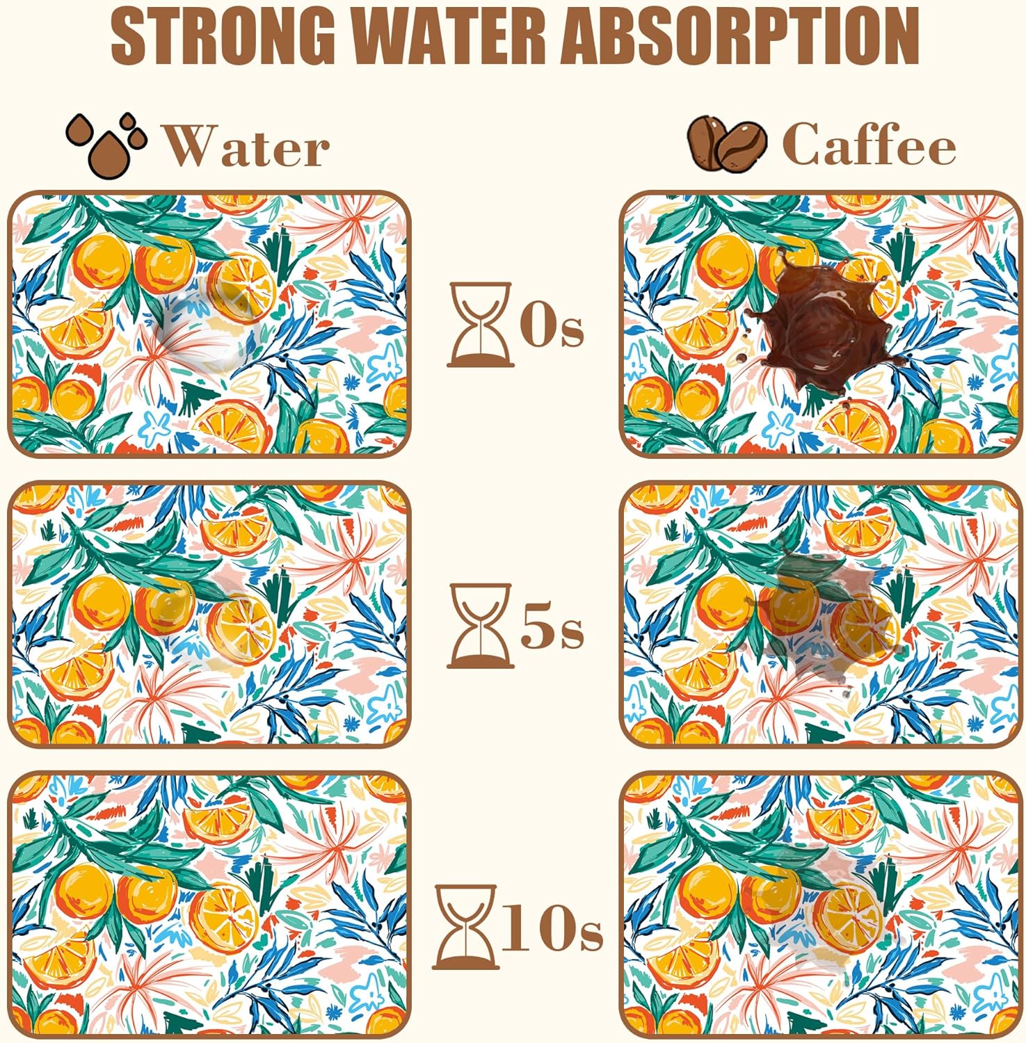 Dish Drying Mat Fruit Orange and Leaves Coffee Bar Mat for Countertop Absorbent Coffee Mat Rubber Backed Hide Stain Dish Drainer Rack Mat Coffee Maker Coffee Pot Dining Room Decor 11.8 x 19.7 Inch