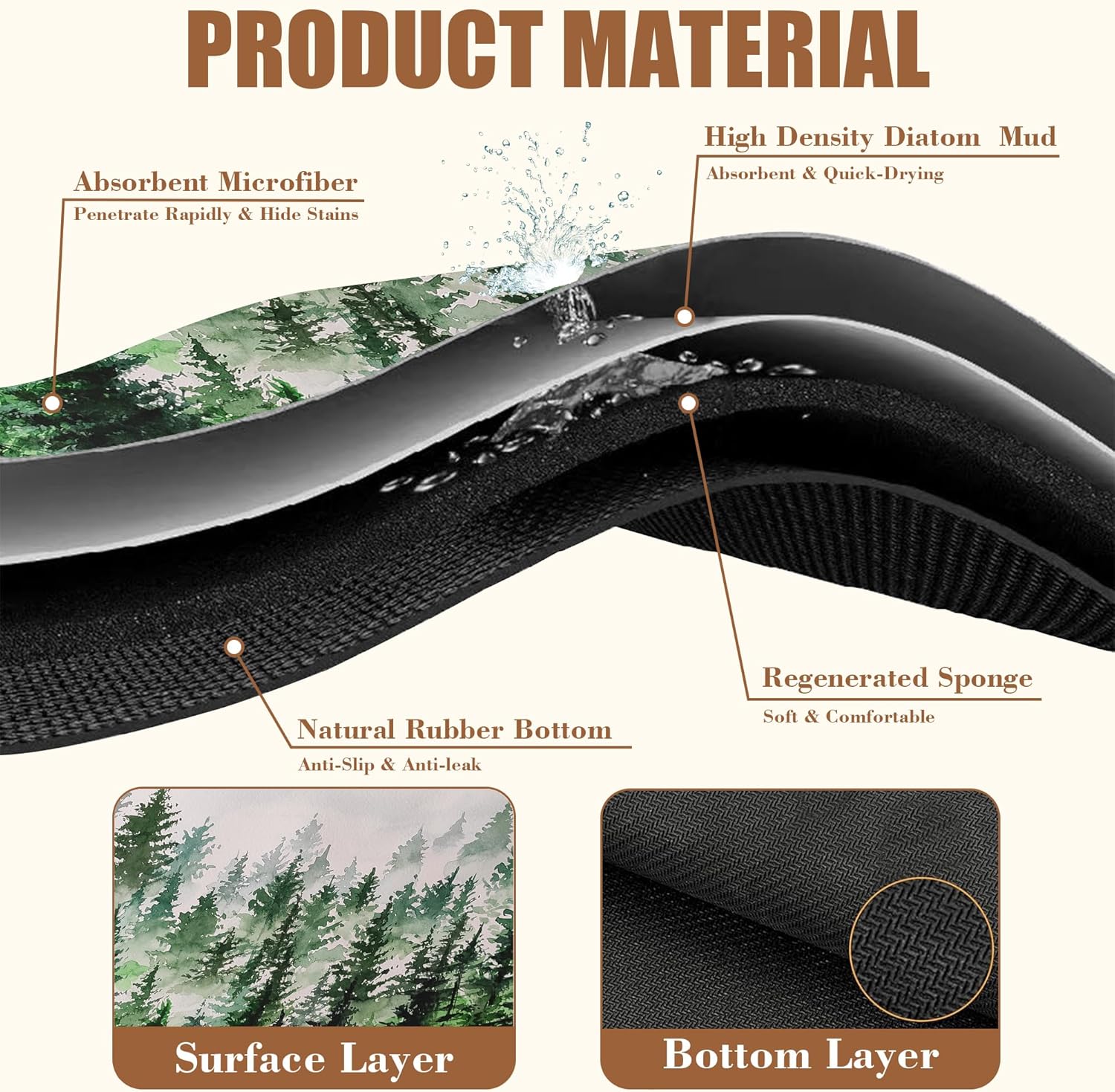 Dish Drying Mat Watercolor Foggy Forest Coffee Bar Mat for Countertop Absorbent Rubber Backed Hide Stain Dish Drainer Rack Pad Coffee Maker Espresso Machine Dining Room Decor 11.8 x 19.7 Inch