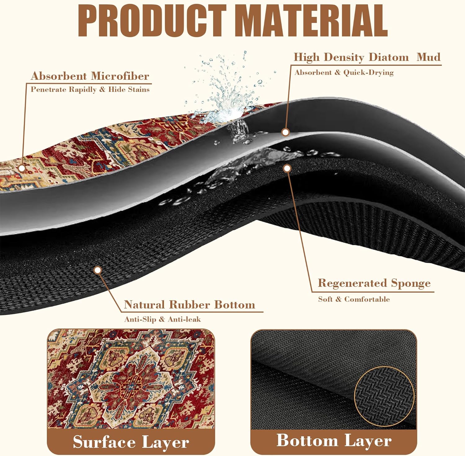 Boho Dish Drying Mat Persian Tribal Coffee Bar Mat for Countertop Absorbent Rubber Backed Hide Stain Dish Drainer Rack Pad Coffee Maker Espresso Machine Dining Room Decoration 11.8 x 19.7 Inch