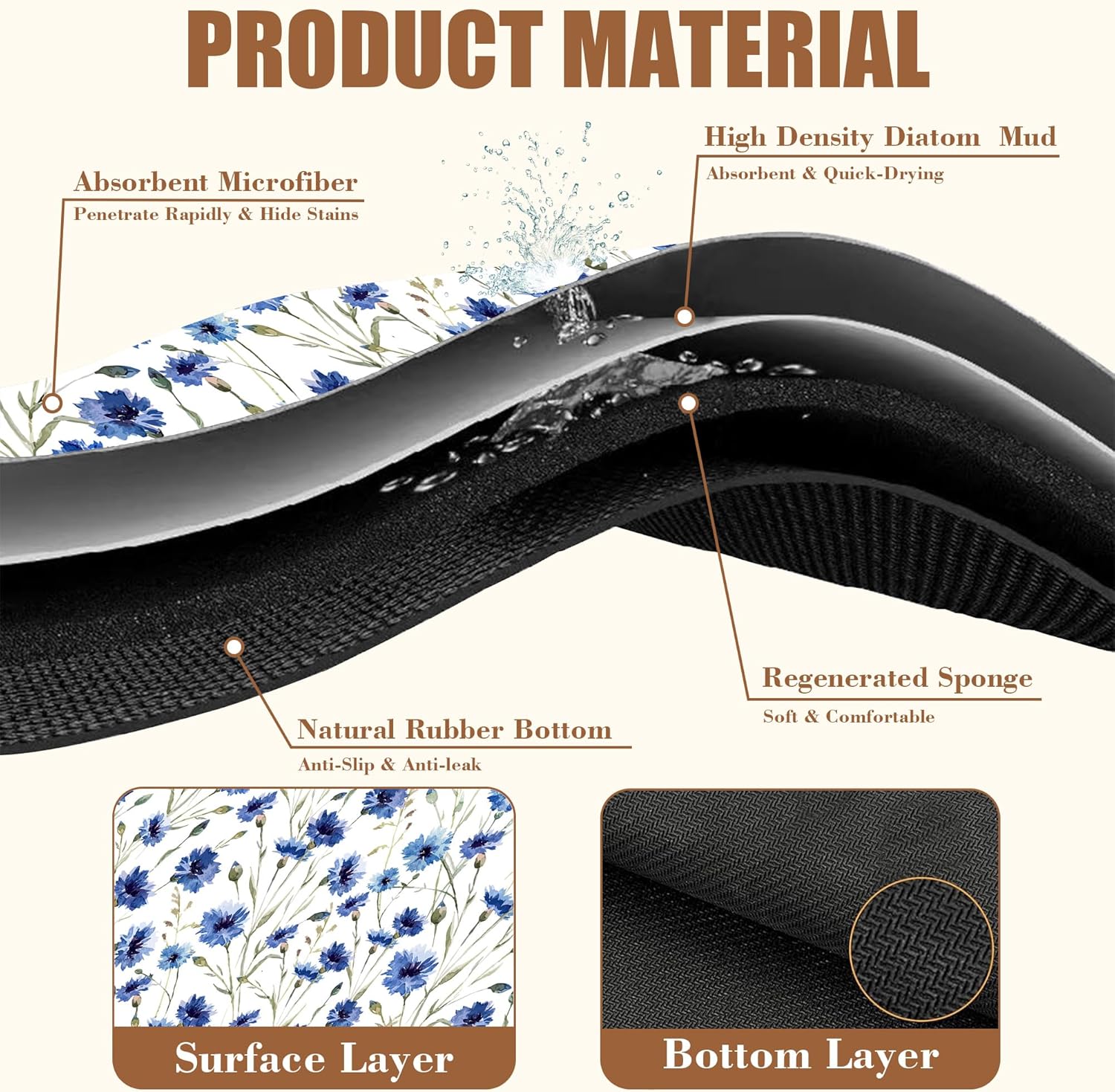 Watercolor Blue Cornflower Dish Drying Mat for Kitchen Counter Floral Coffee Bar Mat Hide Stain Absorbent Rubber Backed Drying Rack Pad Espresso Machine Coffee Bar Accessories 15.7 x 23.6 Inch