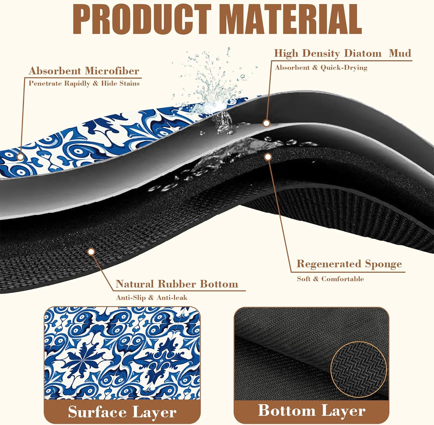 Dish Drying Mat Blue Portuguese Tiles Coffee Bar Mat for Countertop - Absorbent Rubber Backed Hide Stain Dish Drainer Rack - Coffee Maker Pot Dining Room Decoration 15.7 x 23.6 Inch